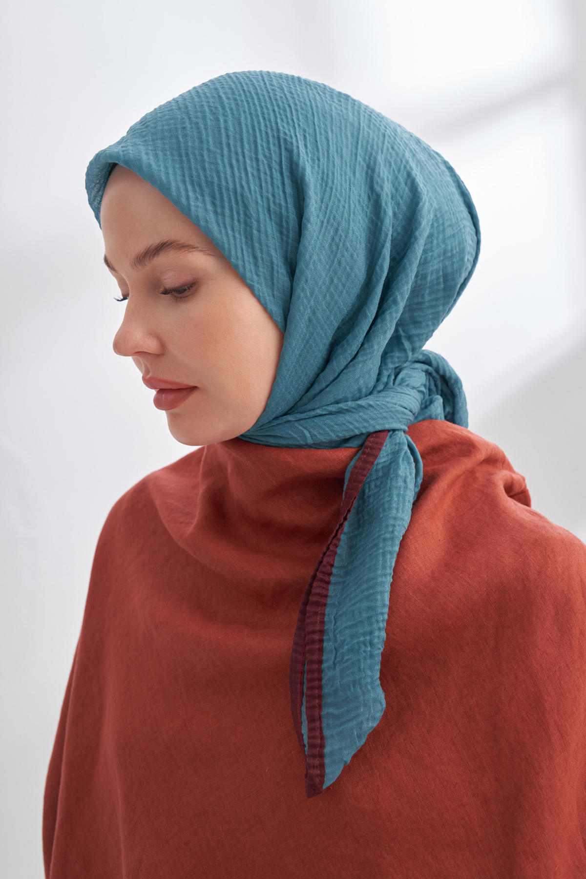MÜSLİN BİYELİ EŞARP - PETROL MÜSLİN BİYELİ EŞARP - PETROL 3353 110 x 110