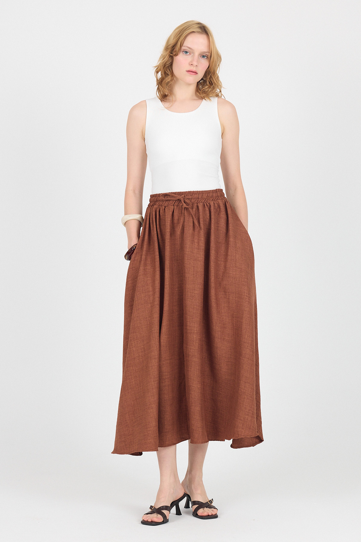 Kırmızı Pamuklu Beli Lastikli Midi Etek 8024A Kırmızı Pamuklu Beli Lastikli Midi Etek 8024A 25Y1123133080 42