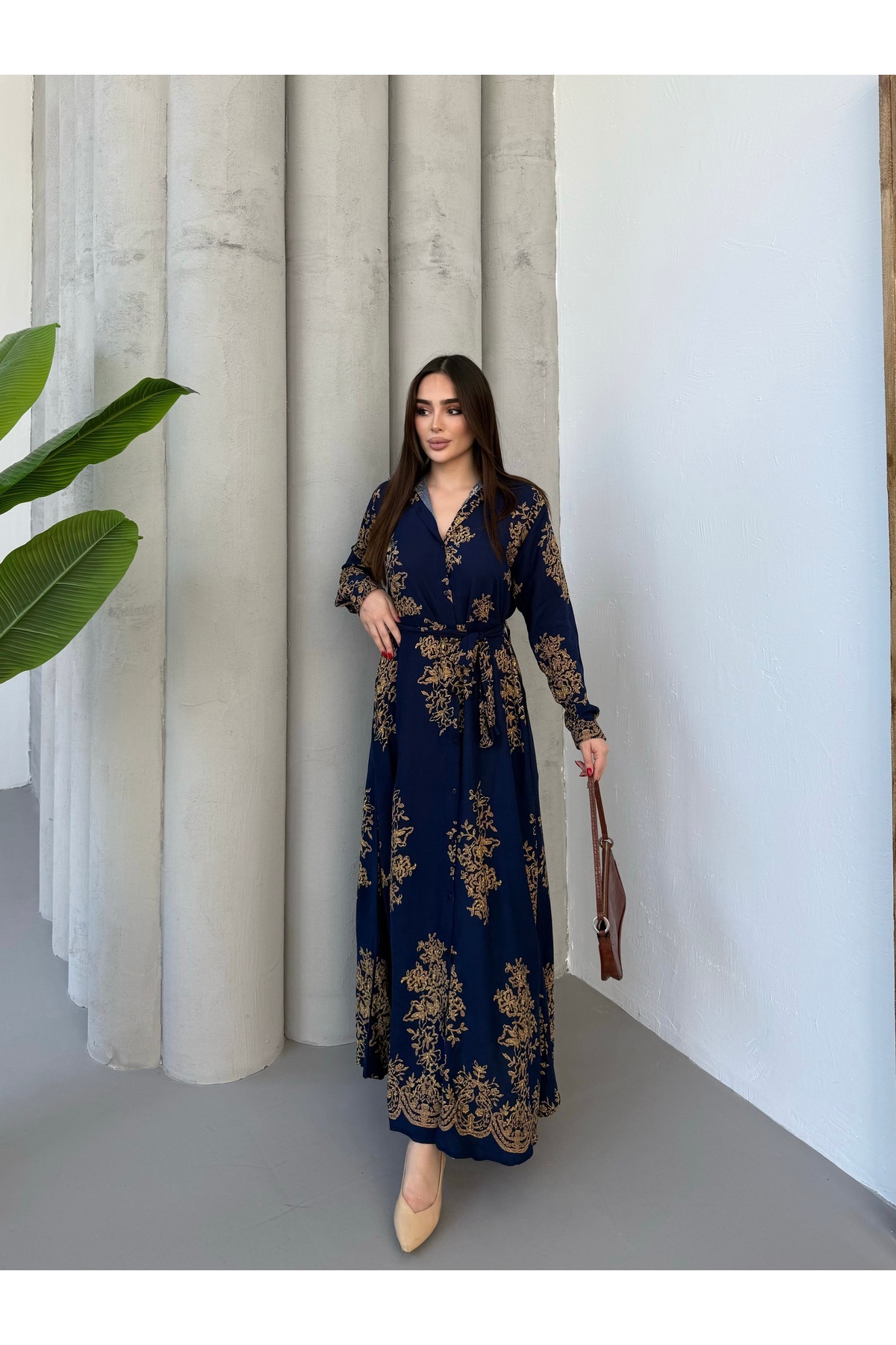 Yaprak Desen Gömlek Elbise Yaprak Desen Gömlek Elbise MA-0054 4XL-5XL