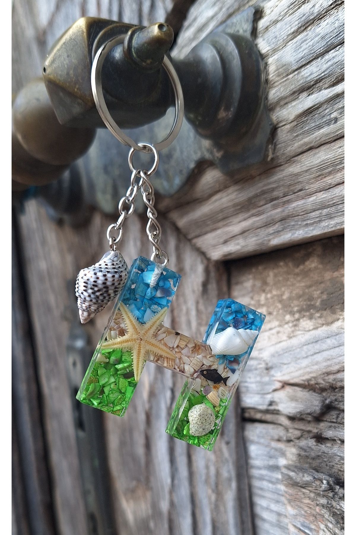 Epoksi H Harfi Anahtarlık Mavi Simli Nazar Boncuk Aksesuarlı Epoksi H Harfi Anahtarlık Mavi Simli Nazar Boncuk Aksesuarlı EPOKSİH تک سایز