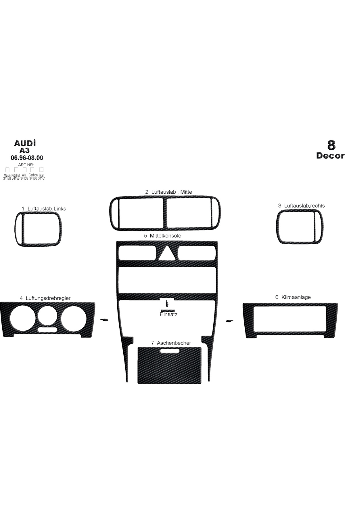 Audi A3 Konsol-Torpido Kaplama 1996-2000 8 Parça Audi A3 Konsol-Torpido Kaplama 1996-2000 8 Parça mrs14624 تک سایز