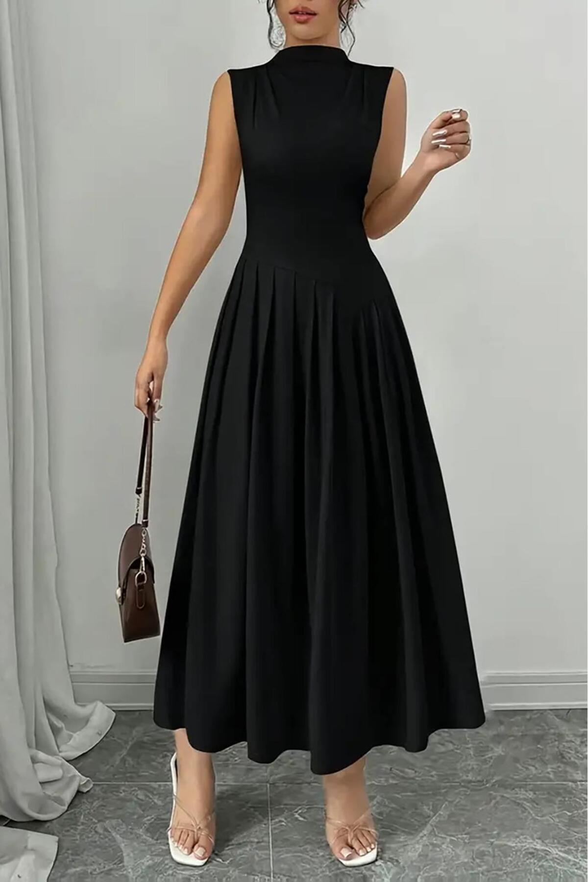 Siyah Kadın Balıkçı Yaka Kolsuz Pileli Krep Kumaş Uzun Elbise Siyah Kadın Balıkçı Yaka Kolsuz Pileli Krep Kumaş Uzun Elbise DFX391112 XL