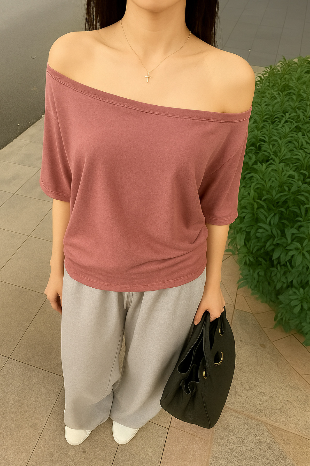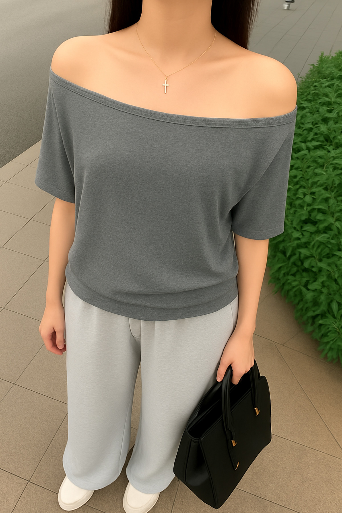 Bebe Mavisi Kadın Düşük Omuz Kayık Yaka Oversize T-Shirt Bebe Mavisi Kadın Düşük Omuz Kayık Yaka Oversize T-Shirt YKDNTST025 L/XL