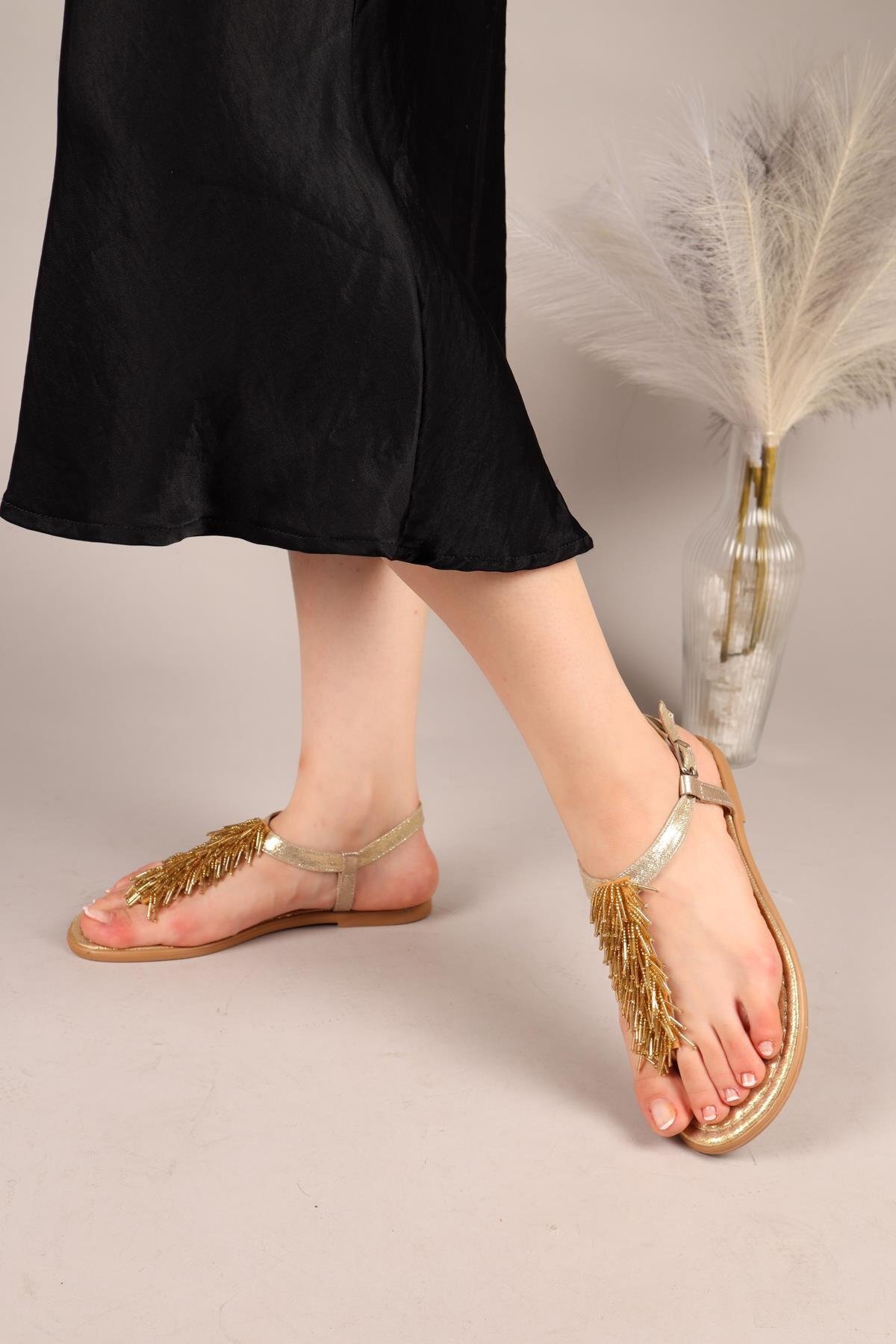 FLOPPY Sarkıt Boncuklu Parmak Arası Sandalet GOLD FLOPPY Sarkıt Boncuklu Parmak Arası Sandalet GOLD 5583 40