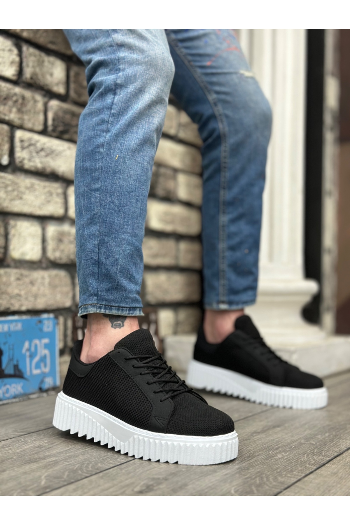 Siyah Bağcıklı Hafif Yüksek Beyaz Taban Tarz Erkek Spor Ayakkabı TGD230161 Siyah Bağcıklı Hafif Yüksek Beyaz Taban Tarz Erkek Spor Ayakkabı TGD230161 44