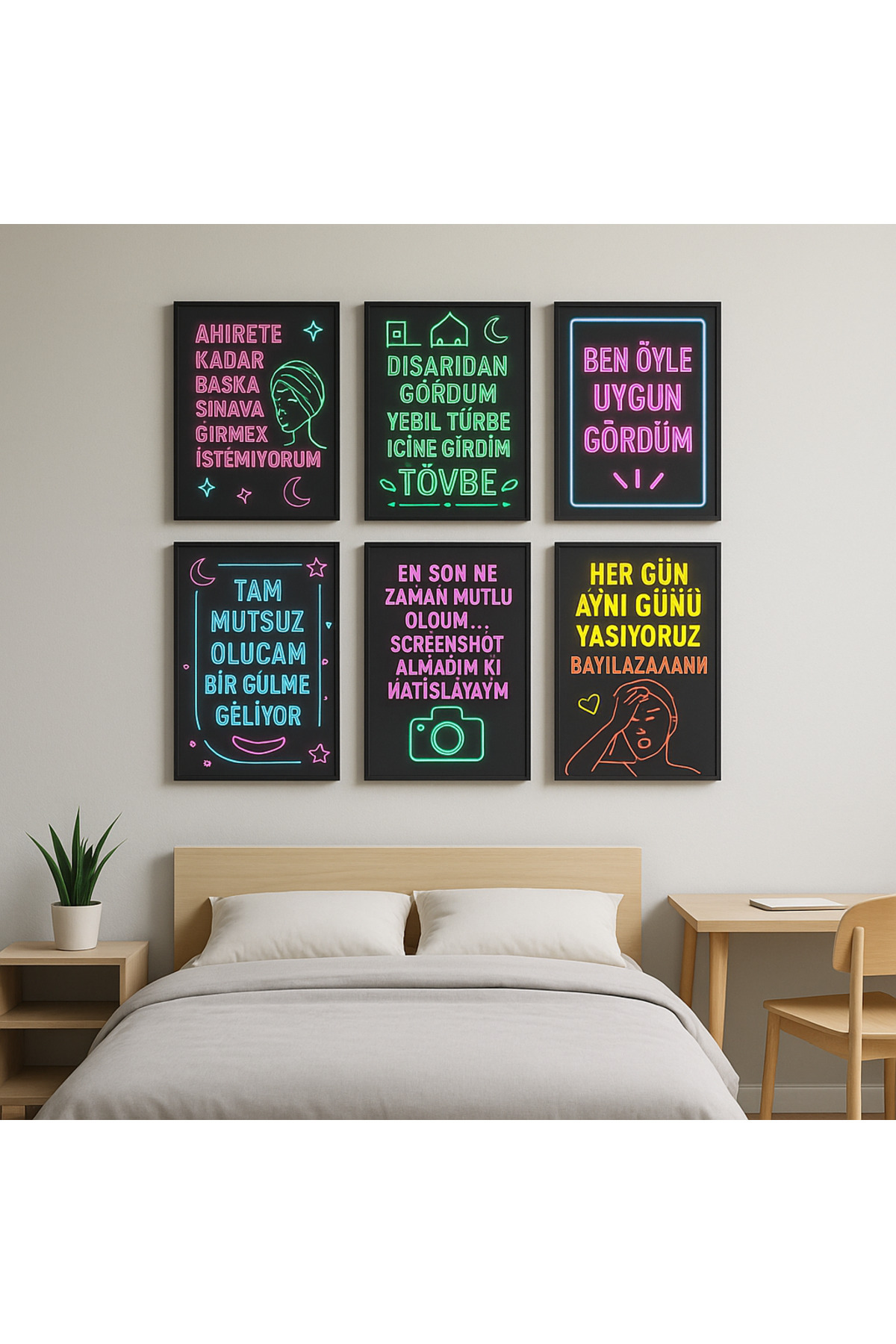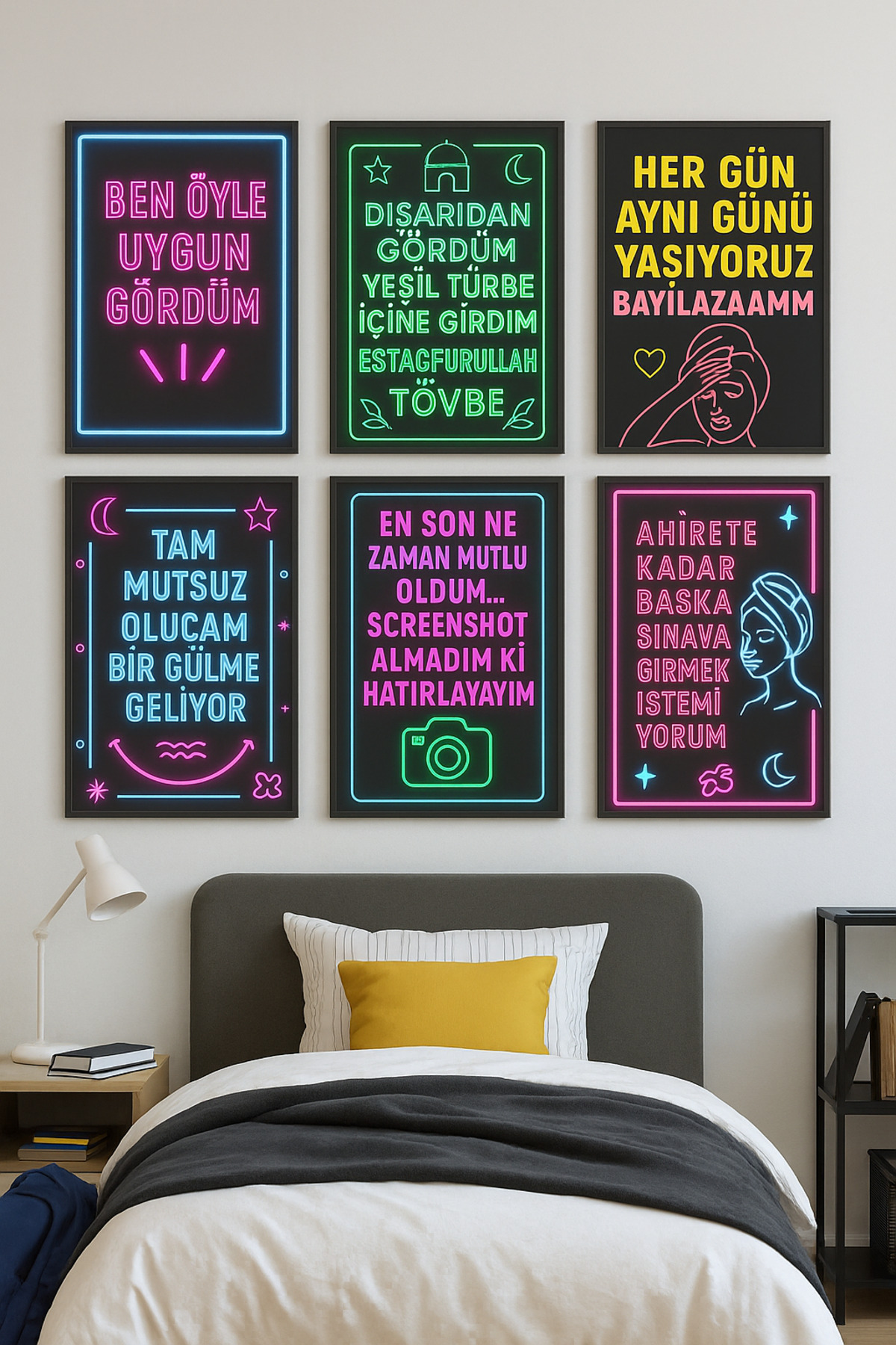 Neon Yazılı 6'lı Ahşap Tablo Seti – 15x22 cm | UV Baskılı MDF Duvar Dekoru | Mizahi Sözler Neon Yazılı 6'lı Ahşap Tablo Seti – 15x22 cm | UV Baskılı MDF Duvar Dekoru | Mizahi Sözler dsnm 15 x 22