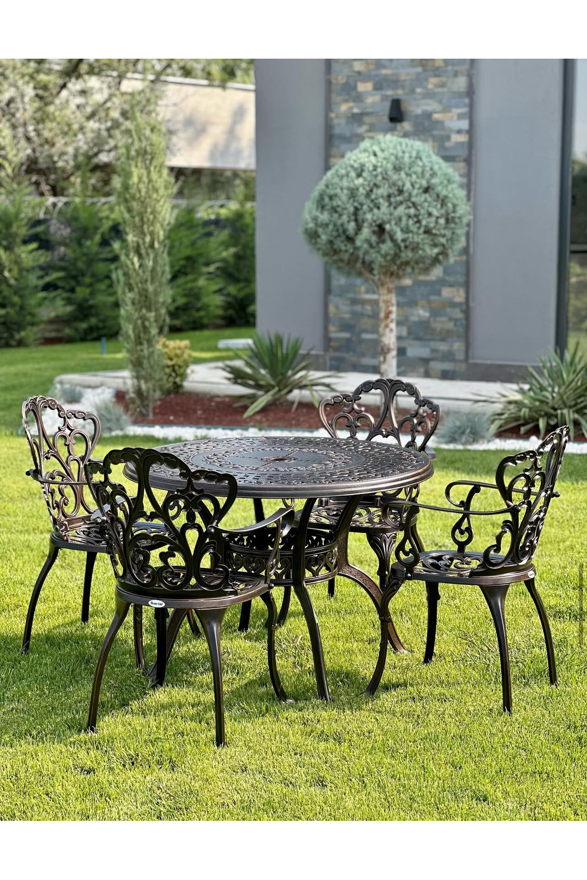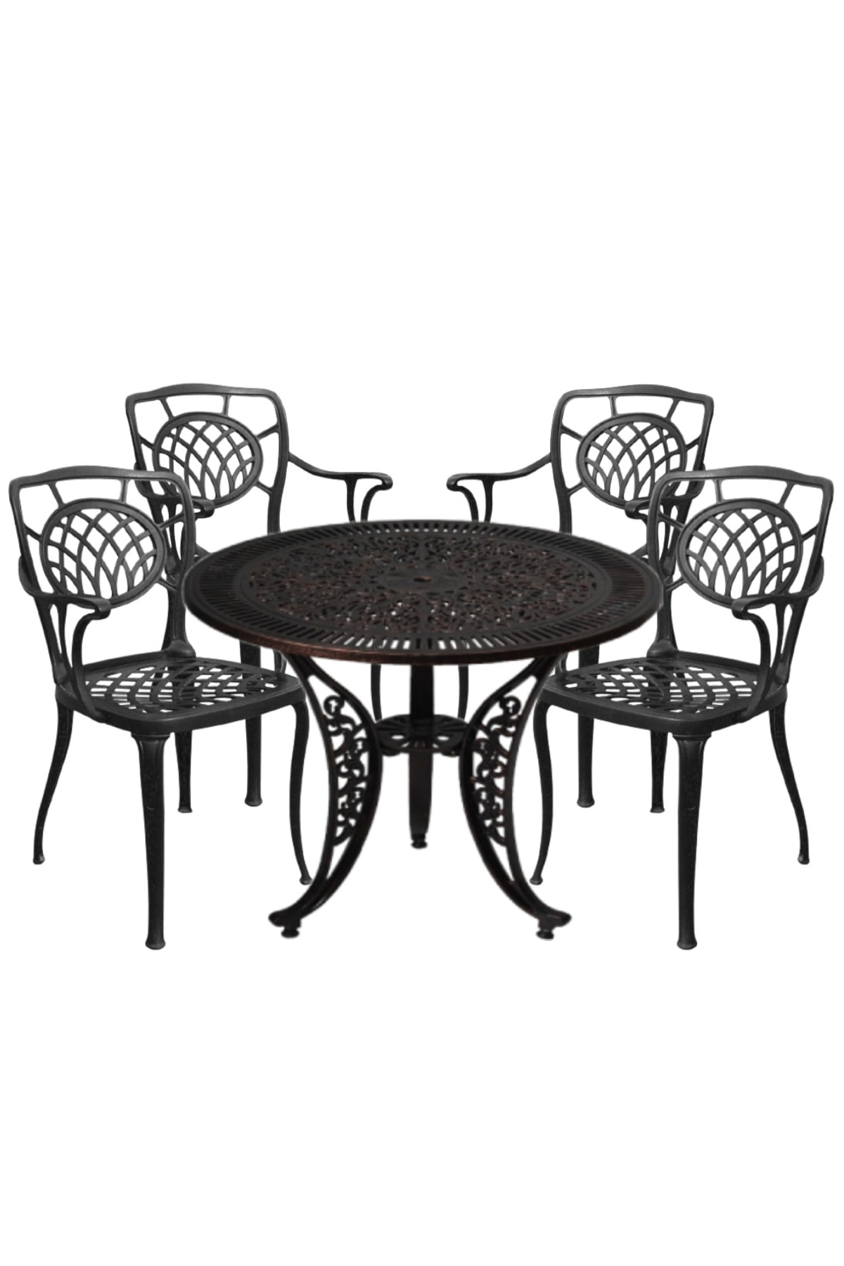 İthal Alüminyum Döküm Masa Sandalye Takımı Antik Bakır Siyah İthal Alüminyum Döküm Masa Sandalye Takımı Antik Bakır Siyah veragarden2 تک سایز