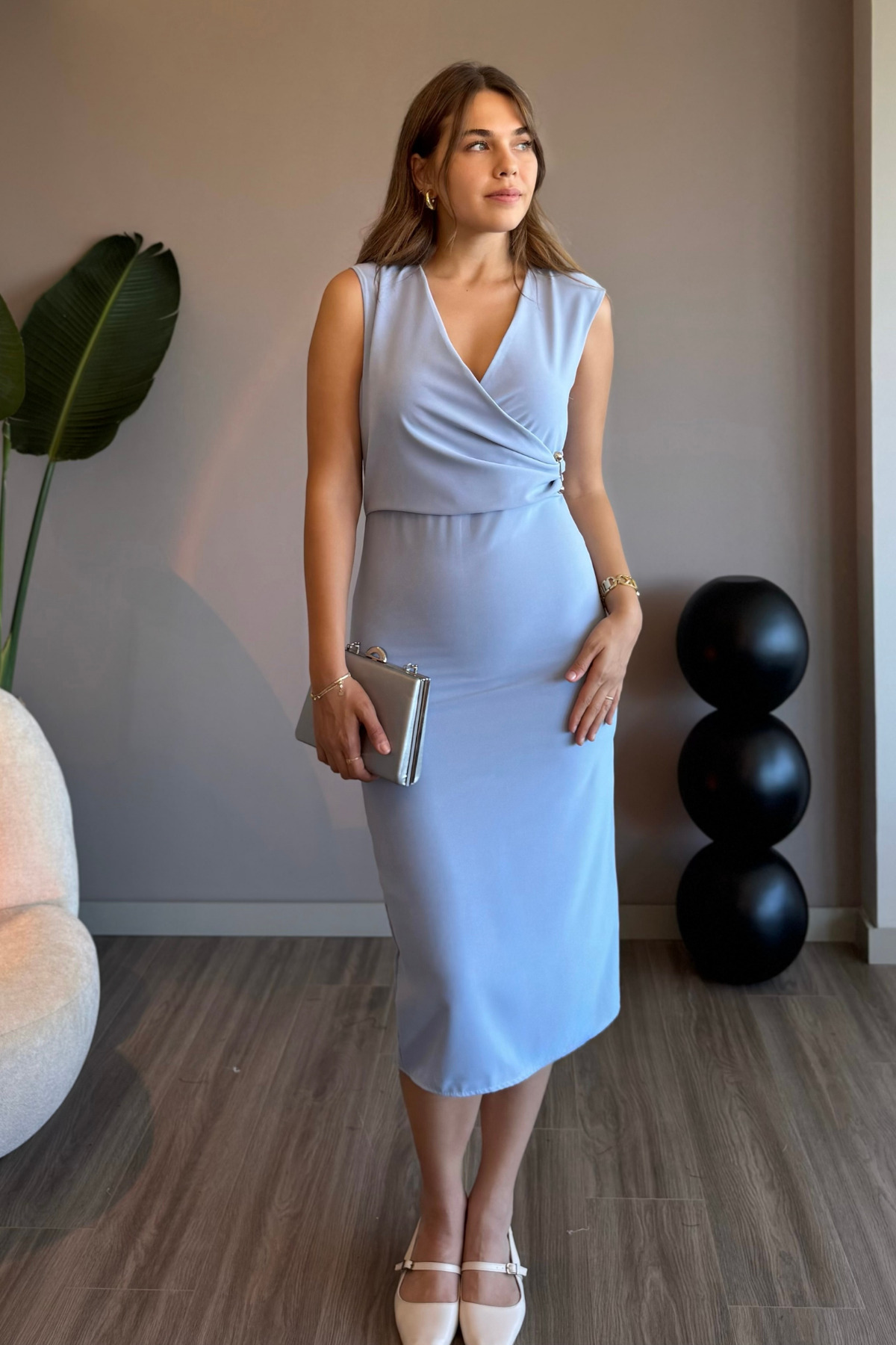 Kruvaze Yaka Aksesuarlı Siyah Elbise Kruvaze Yaka Aksesuarlı Siyah Elbise Elb11 XL