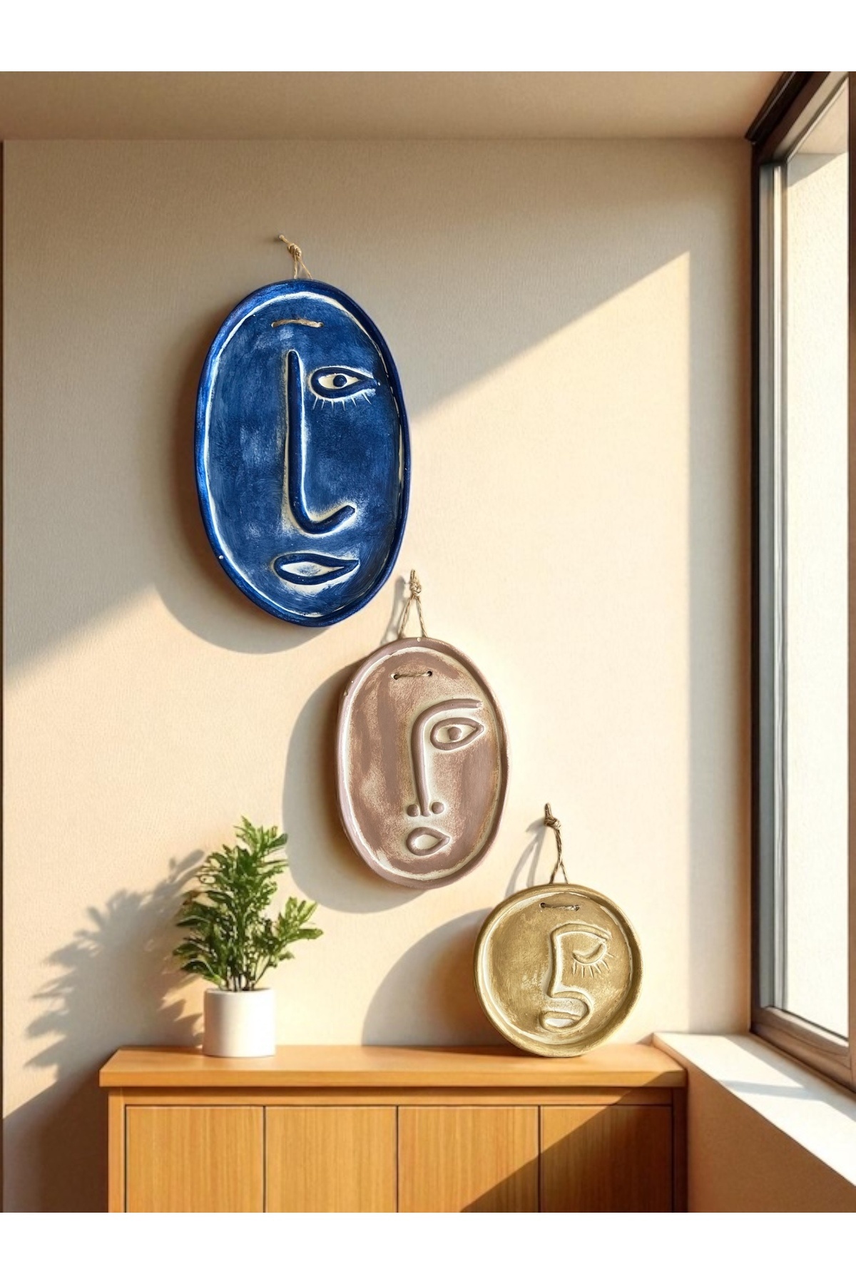 Soyut Yüz 3lü Renkli Beton Duvar Süsü, Renkli Seri 1 Soyut Yüz 3lü Renkli Beton Duvar Süsü, Renkli Seri 1 mn250720252636598547 27 cm