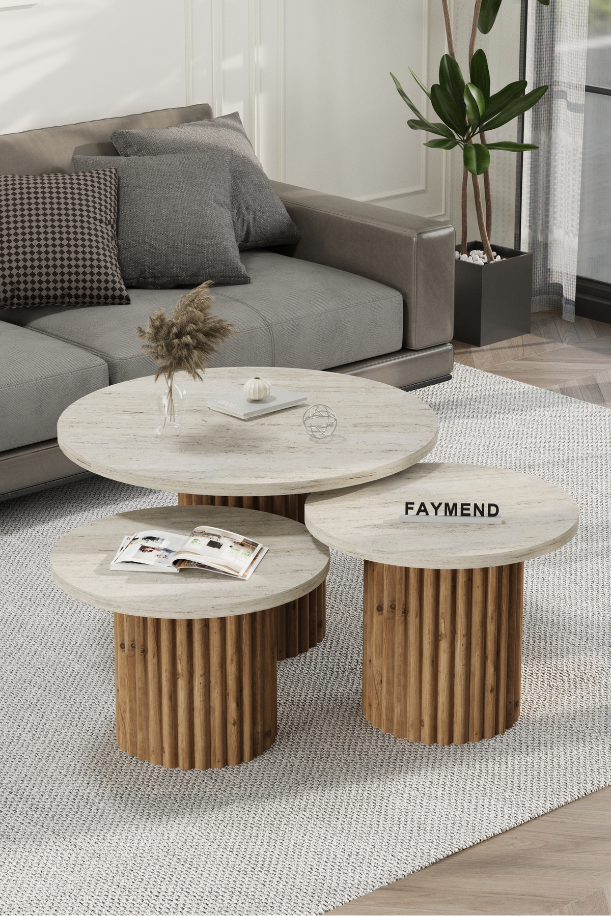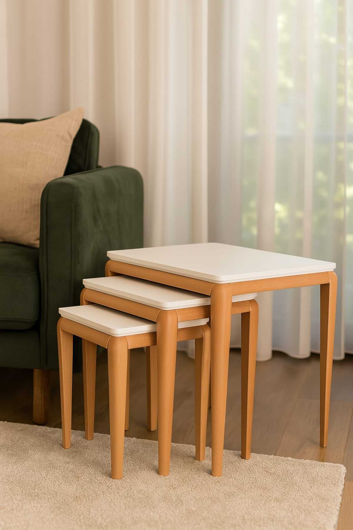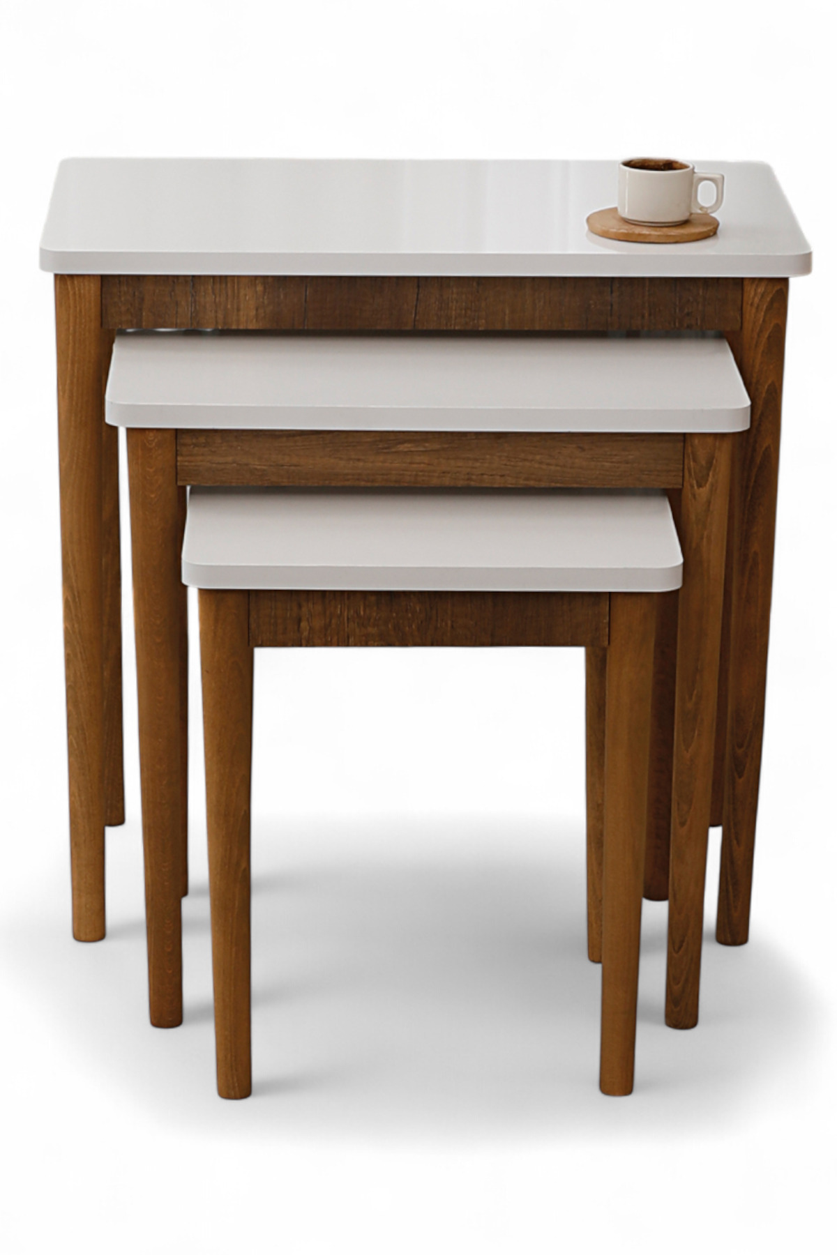 Ürünün orta sehpasınıda almıştım.Orta sehpa ile zigonlar arasında renk olarak az bir ton farkı var ama bu benim hoşuma gitti.Ürünlerin çerçeve ve ayak kısmı Ahşap yüzeyi muhtemelen MDF.üzerine çok kaliteli bir boya atılmış.hem işçilik hemde malzeme üst düzey.kurulum çok basit ,1 er tane vida ile sağlam bir şekilde tutuyor.Paketleme keza sorunsuzdu.Yani bu modeli beğeniyorsanız ürünler üst düzey gerçekten.Fiyatı zırt pırt oynamaları tek eleştireceğim husus.Ben nispeten makul bir fiyata alabildim.Kısaca ürünleri öneriyorum.Benim gibi sade,sağlam ve şık bir ürün arayanlar için ilaç gibi bir model ve ürün.