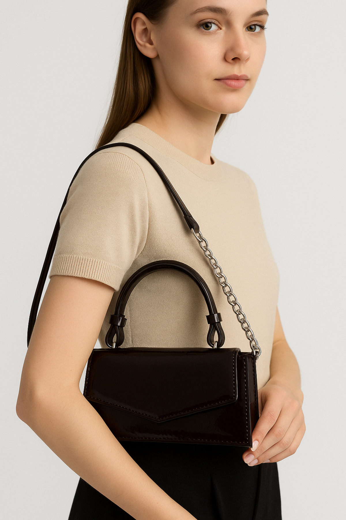 Parlak Rugan Deri Omuz ve El Çantası - Zincir Askılı Şık Tasarım Mini Model Parlak Rugan Deri Omuz ve El Çantası - Zincir Askılı Şık Tasarım Mini Model ALD01008 Standart