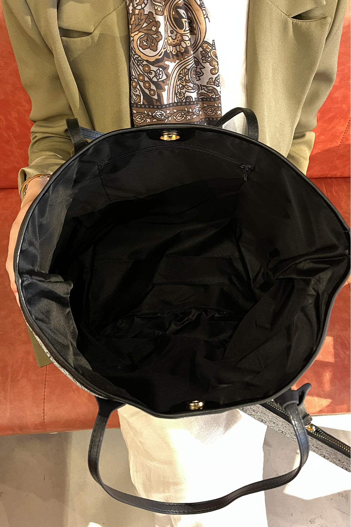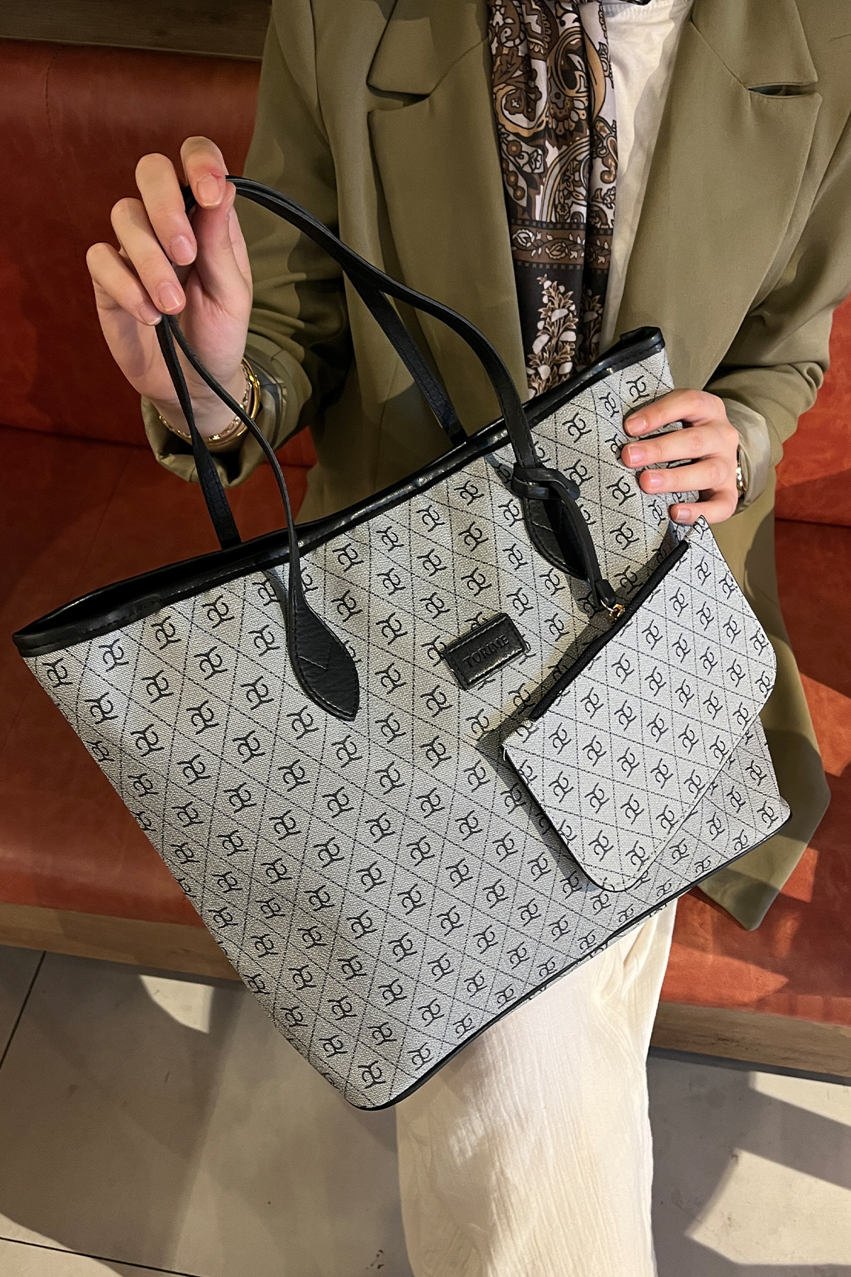 Gri-Siyah Desenli Vegan Deri Büyük Omuz & Kol Çanta – Şık ve Kapasiteli Gri-Siyah Desenli Vegan Deri Büyük Omuz & Kol Çanta – Şık ve Kapasiteli DSN.B.T. Standart