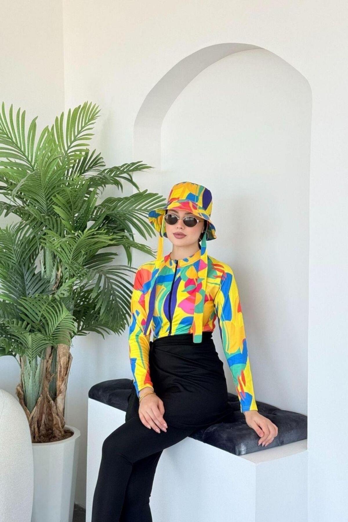 Mayolu 3Lü Tesettür Mayo Takım Sarı Mayolu 3Lü Tesettür Mayo Takım Sarı 10122 S/M