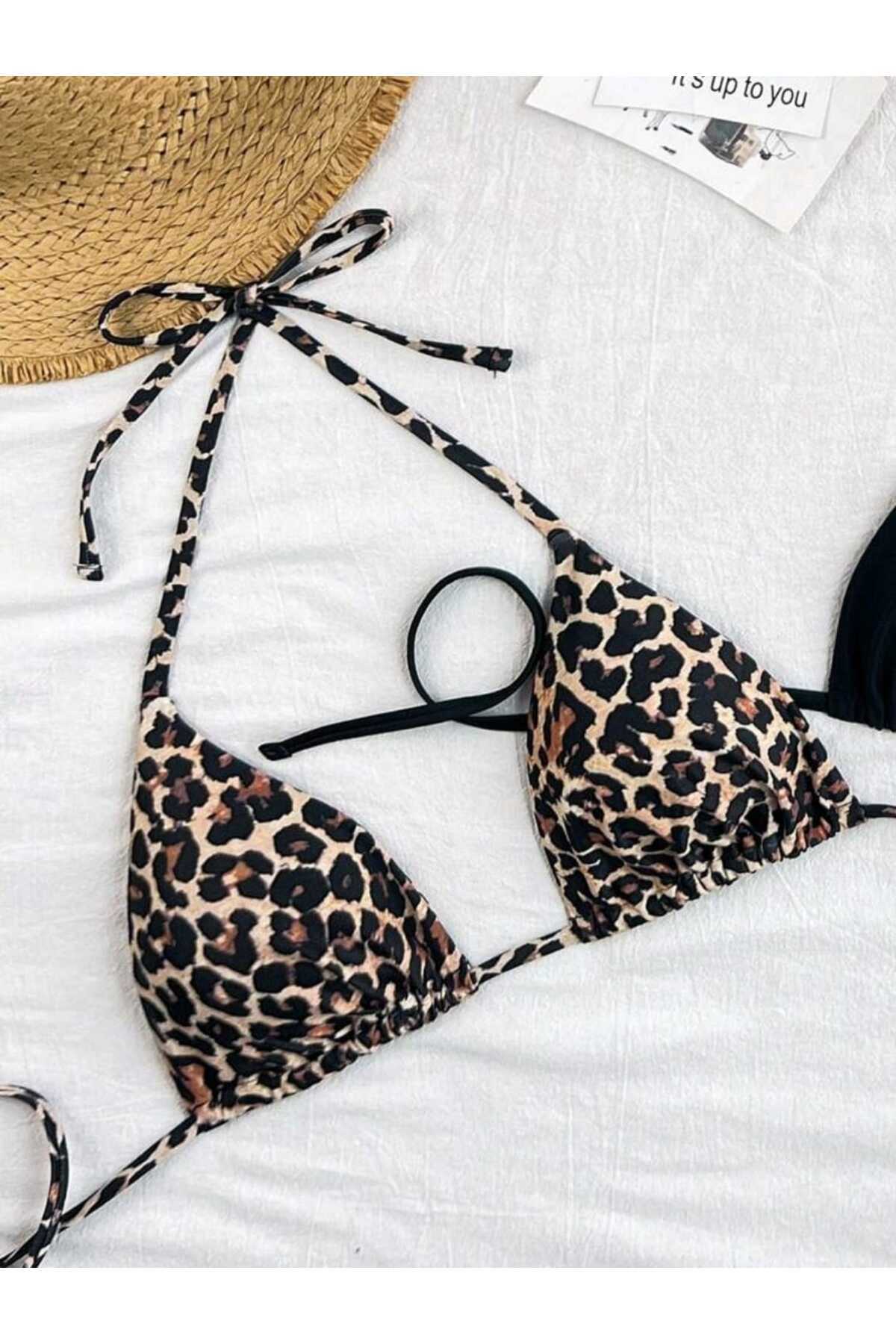Kadın Leopar Desenli Bedli Minimal Kesim Üçgen Bikini Üstü Kadın Leopar Desenli Bedli Minimal Kesim Üçgen Bikini Üstü pee9077 XL/L