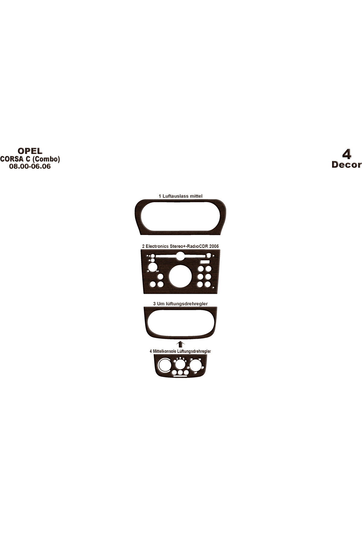 Opel Corsa C / Combo Konsol-Torpido Kaplama 2000-2006 4 Parça Opel Corsa C / Combo Konsol-Torpido Kaplama 2000-2006 4 Parça mrs14998 تک سایز