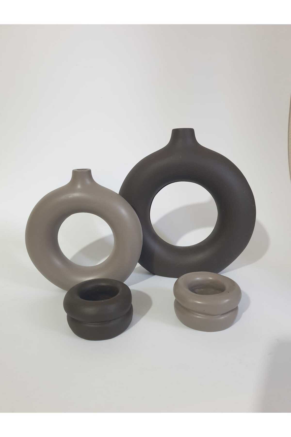 Modern Dekoratif Halka Vazo Ve Mumluk Seti - Iskandinav Ev Dekor Seti 4 Parça Takım Kahve - Vizon Modern Dekoratif Halka Vazo Ve Mumluk Seti - Iskandinav Ev Dekor Seti 4 Parça Takım Kahve - Vizon tactichalkavazo تک سایز