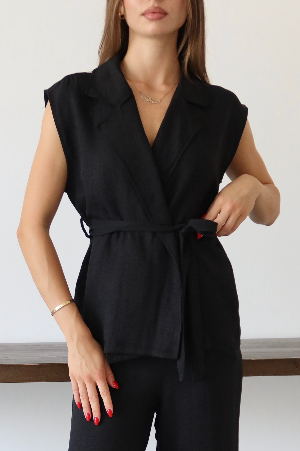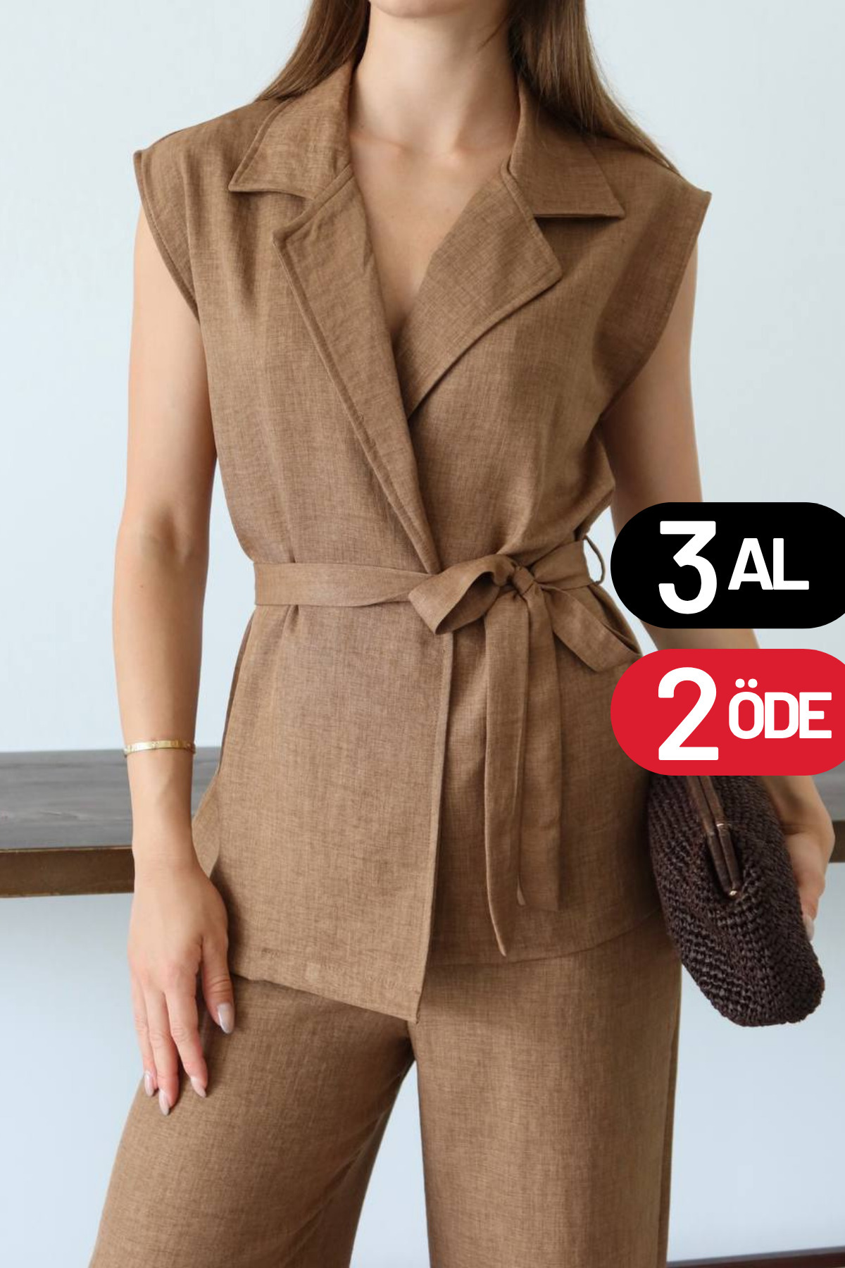 Kadın Kuşaklı Yelek Palazzo Keten Karışımlı Dokuma Takım 3080 Kadın Kuşaklı Yelek Palazzo Keten Karışımlı Dokuma Takım 3080 MB3080 L