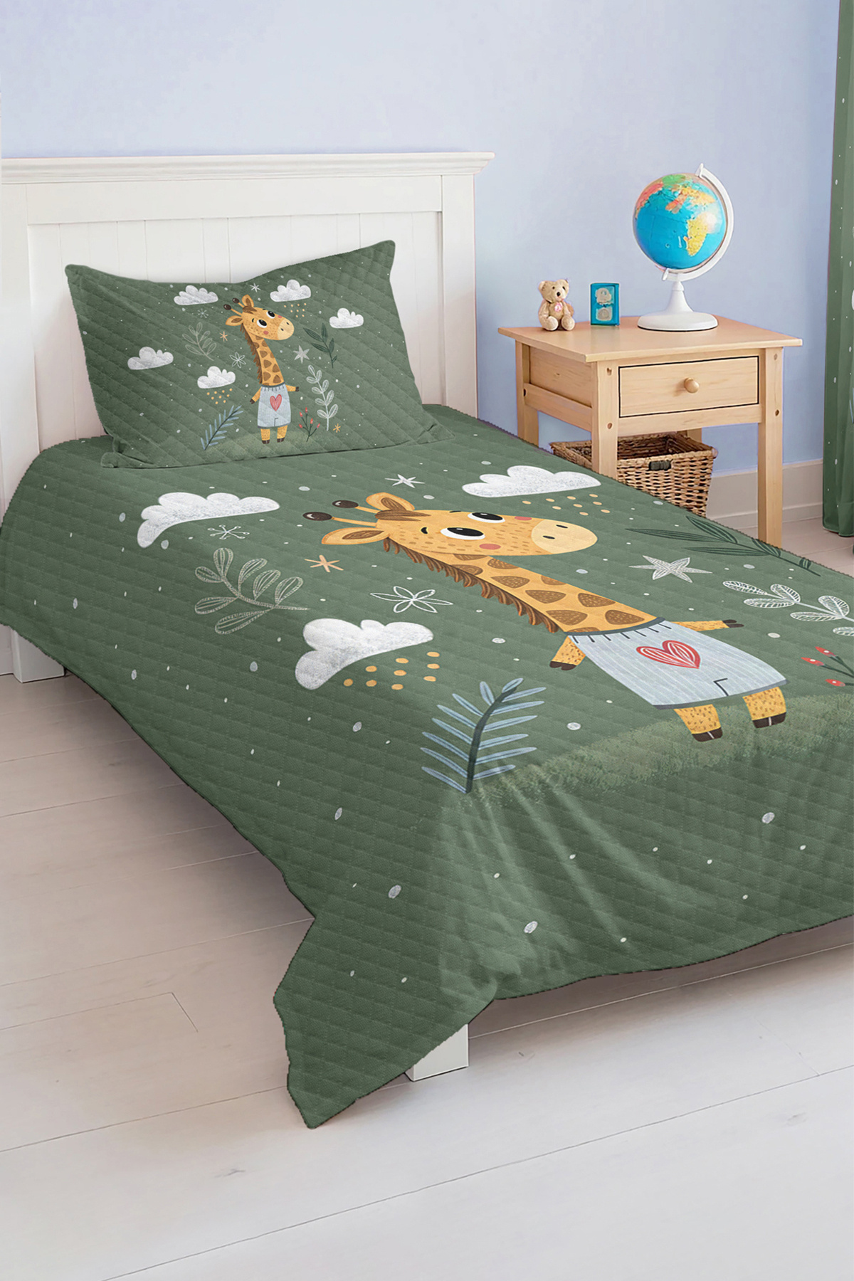 Zürafa ve Bulut Desenli Pastel Yeşil Çocuk ve Genç Odası Pike Takımı Yatak Örtüsü Zürafa ve Bulut Desenli Pastel Yeşil Çocuk ve Genç Odası Pike Takımı Yatak Örtüsü Pike-Tek-16180 تک سایز