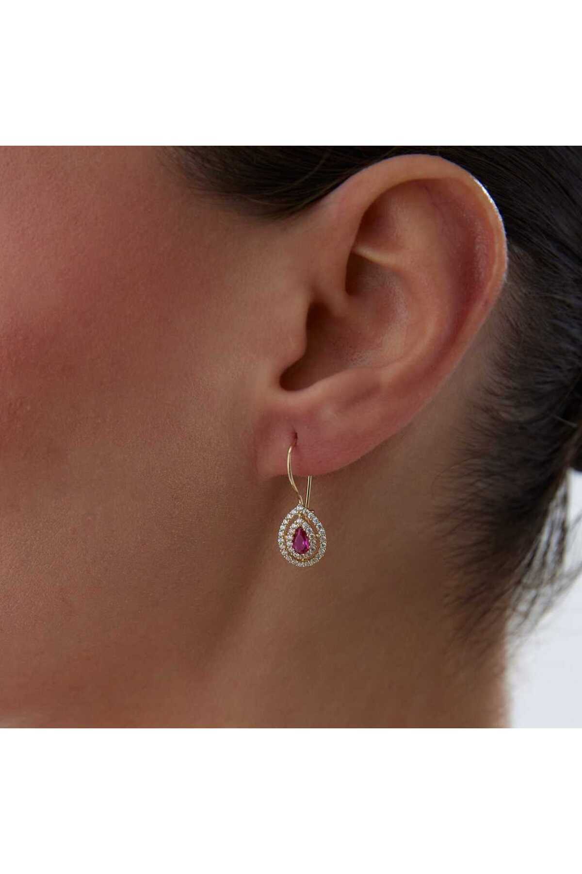 Yeşil Taşlı Damla Sallantılı Küpe Yeşil Taşlı Damla Sallantılı Küpe 32331 تک سایز