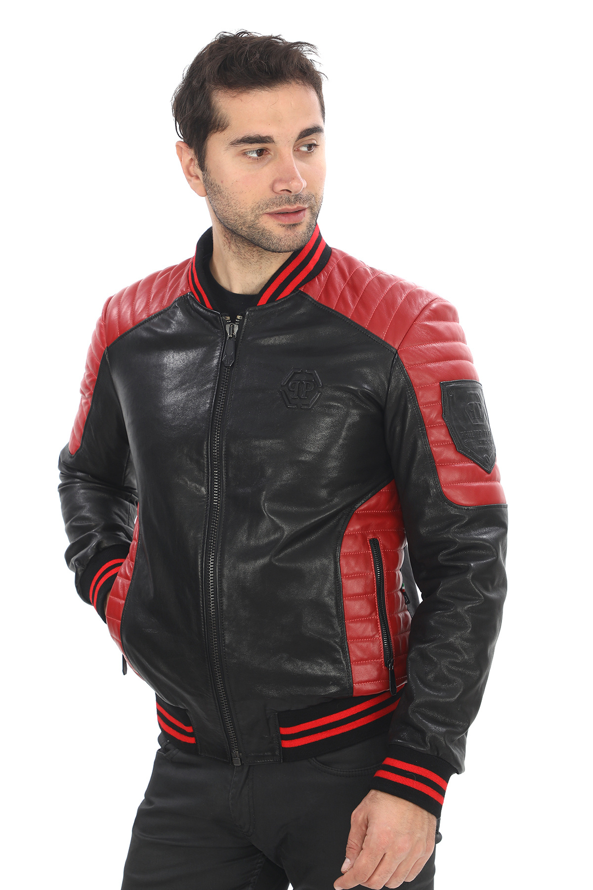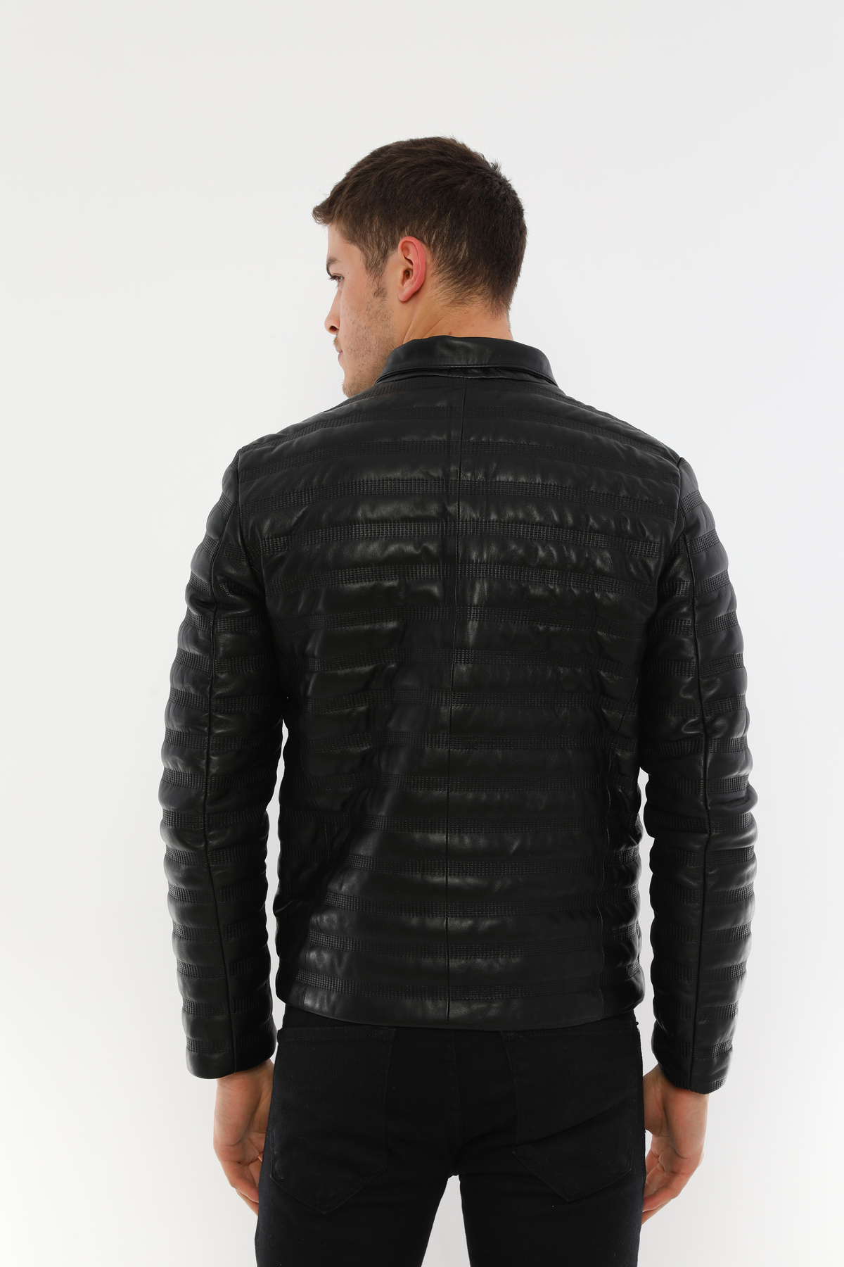İŞLEMELİ ŞİŞME ERKEK DERİ CEKET İŞLEMELİ ŞİŞME ERKEK DERİ CEKET L029 2XL
