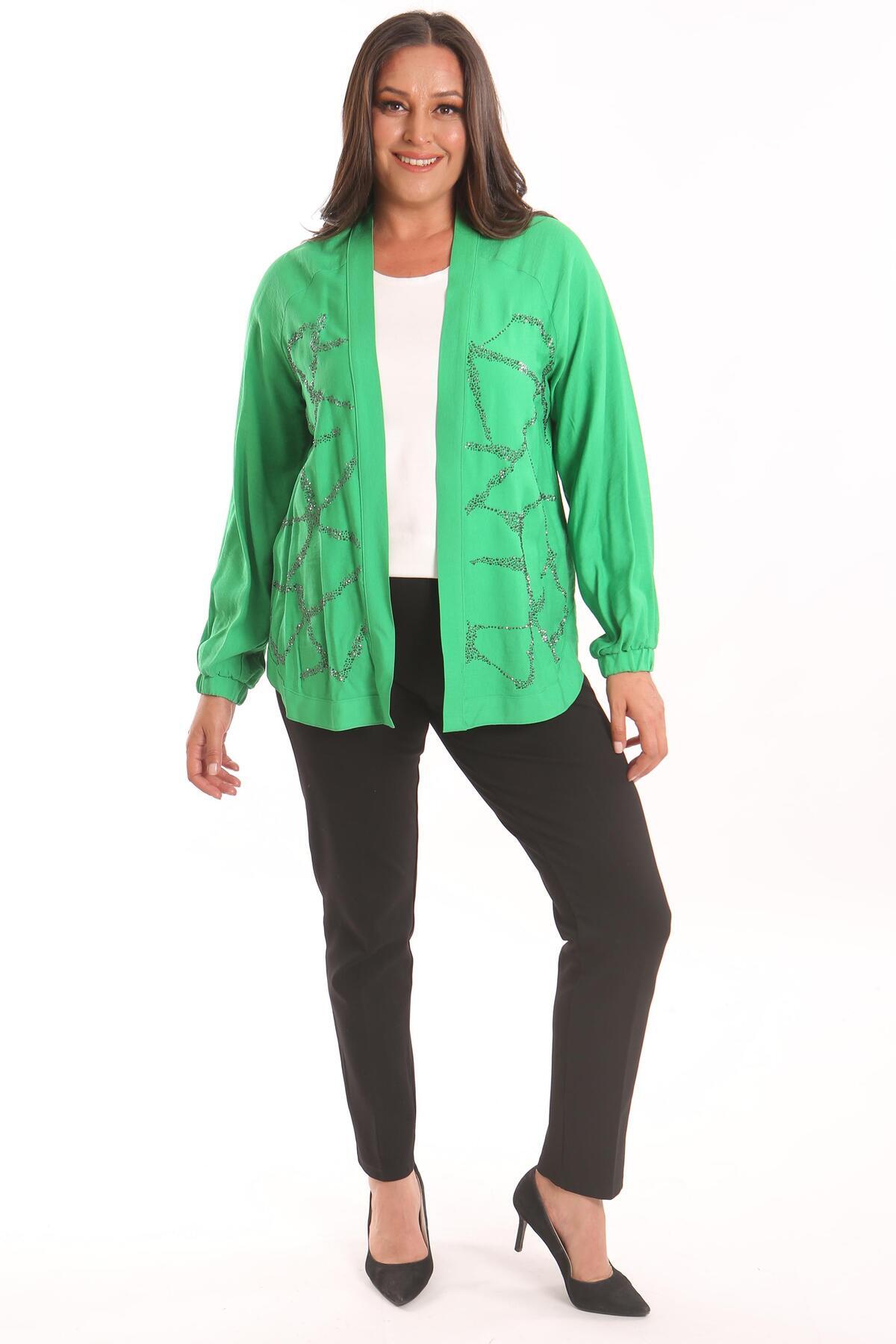 Trend42plus Büyük Beden Ön Taş Baskılı Yeşil Ceket Trend42plus Büyük Beden Ön Taş Baskılı Yeşil Ceket 40154 48