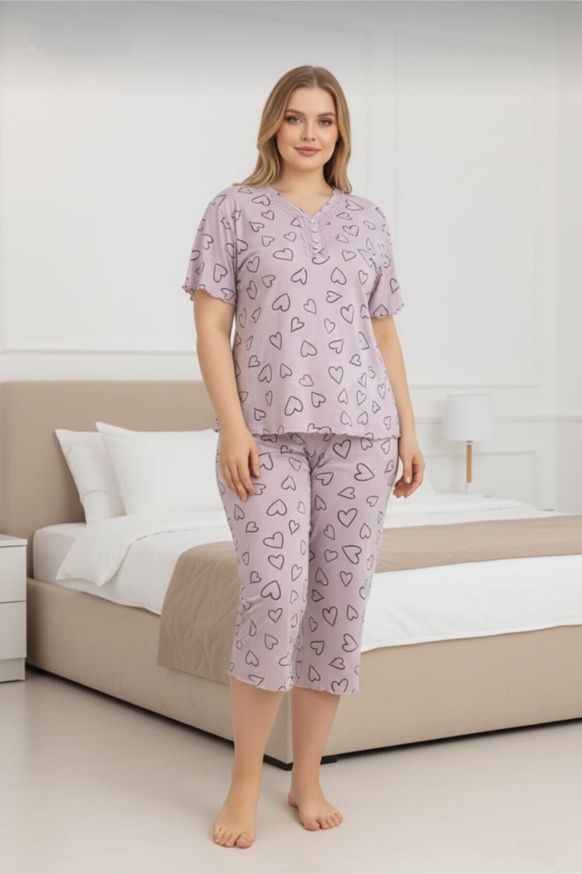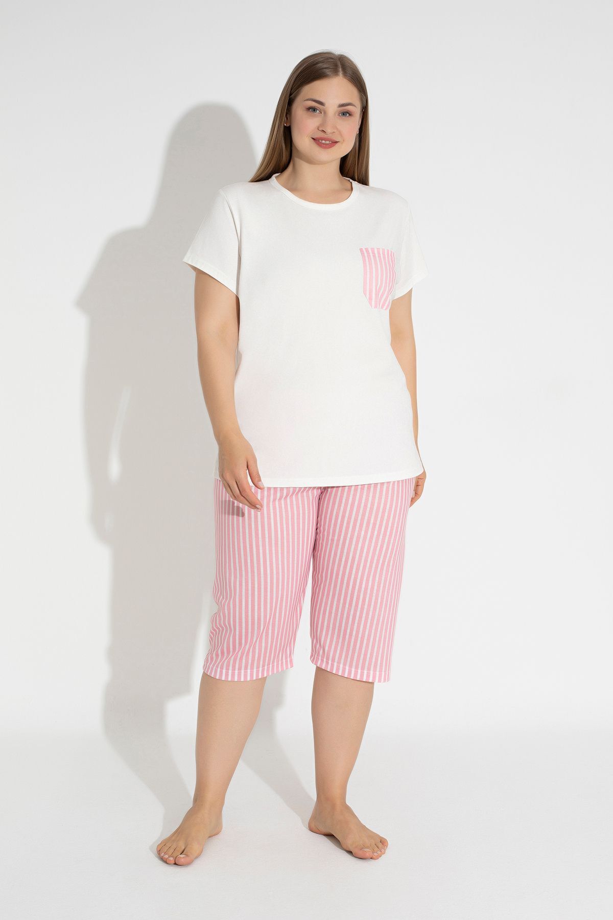 Kadın Büyük Beden Kısa Kollu Kapri Bambu Pijama Takımı Kadın Büyük Beden Kısa Kollu Kapri Bambu Pijama Takımı EFZBKPR 4XL
