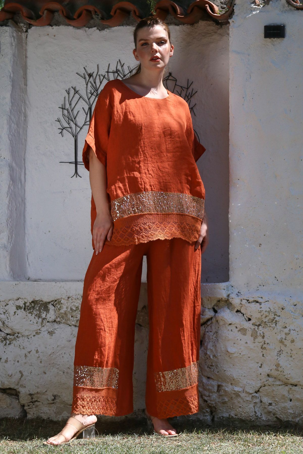 İtalyan Kiremit Rengi Havuz Yaka Düşük Kol Cepli Pul Payet Dantelli Keten Dokuma Takım 73-100 70-68 İtalyan Kiremit Rengi Havuz Yaka Düşük Kol Cepli Pul Payet Dantelli Keten Dokuma Takım 73-100 70-68 M10160000EL89796 Standart
