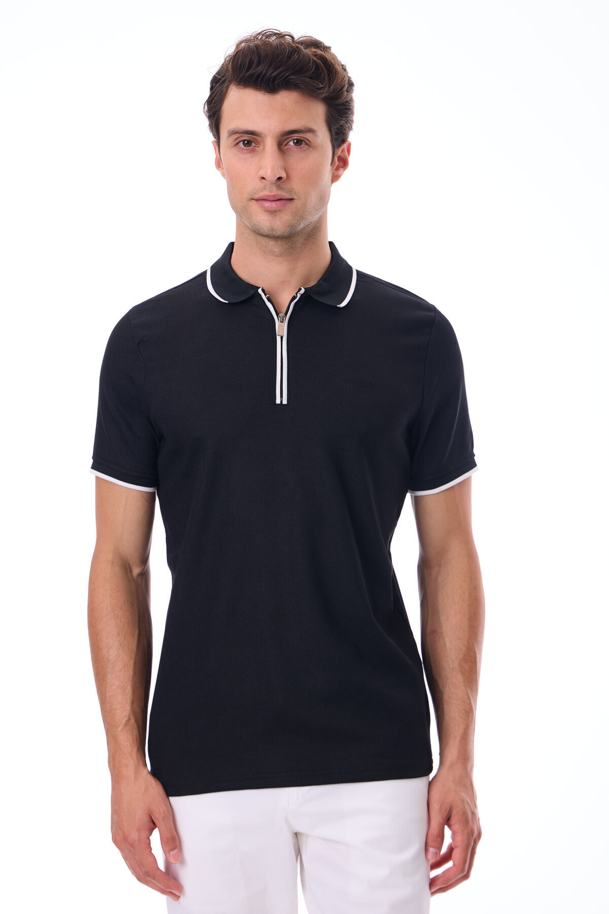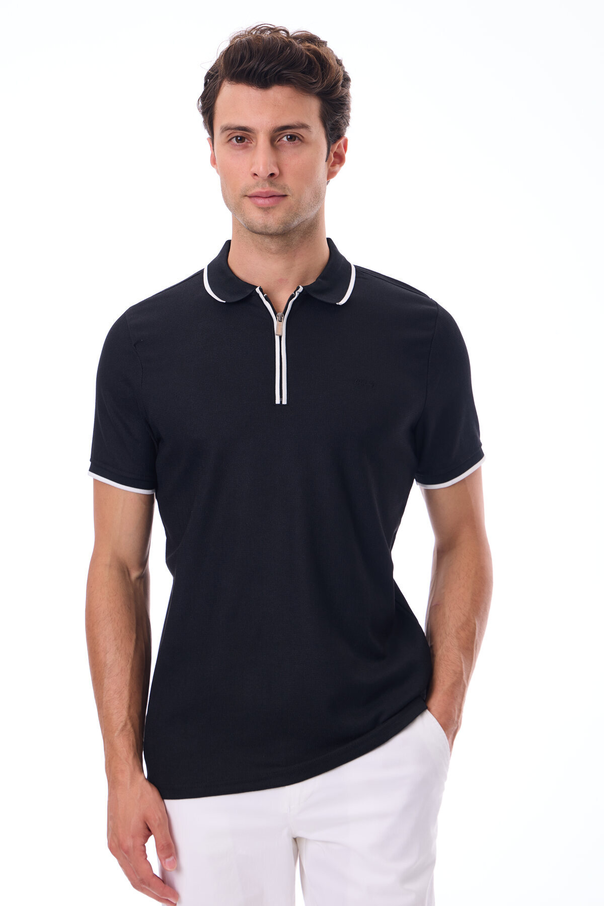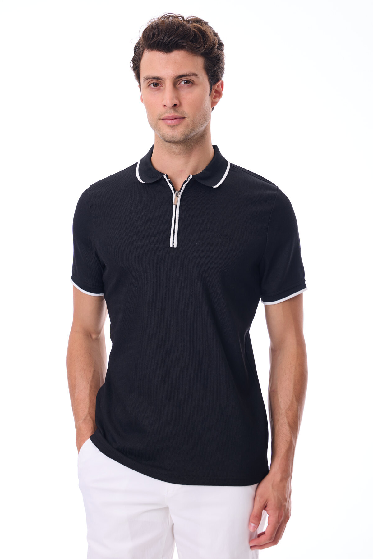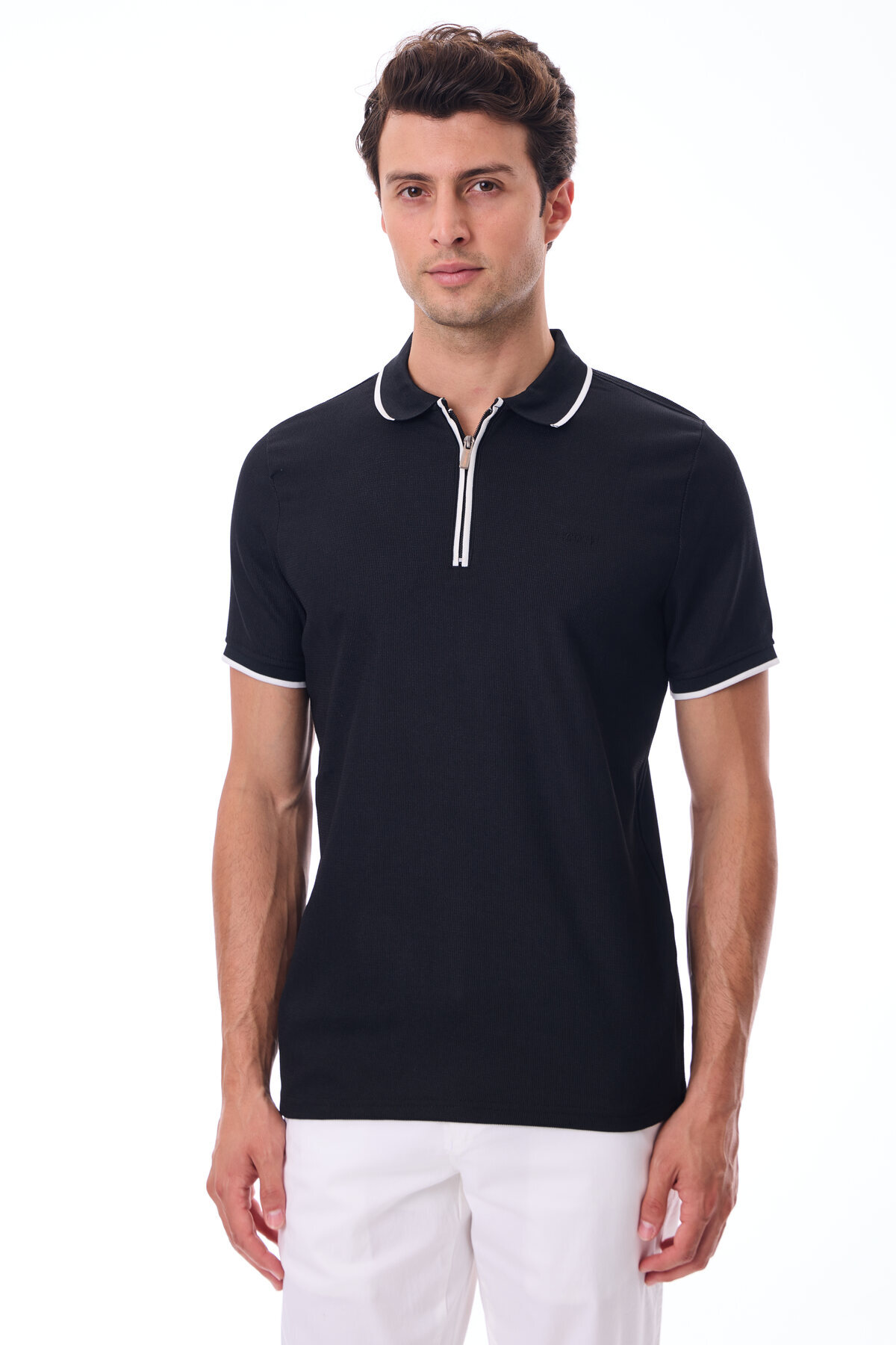 Erkek Fermuarlı Şerit Detaylı Polo Yaka Tişört - Alba Erkek Fermuarlı Şerit Detaylı Polo Yaka Tişört - Alba 2XL