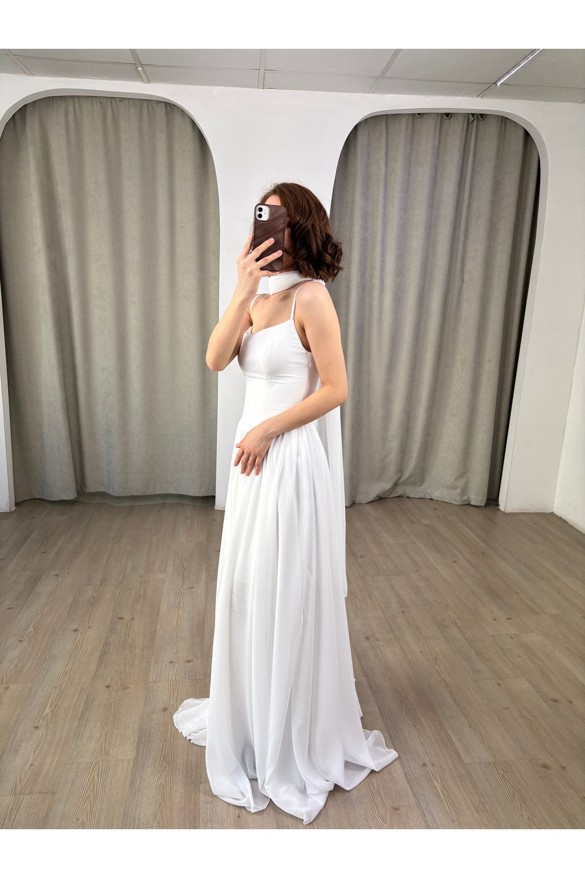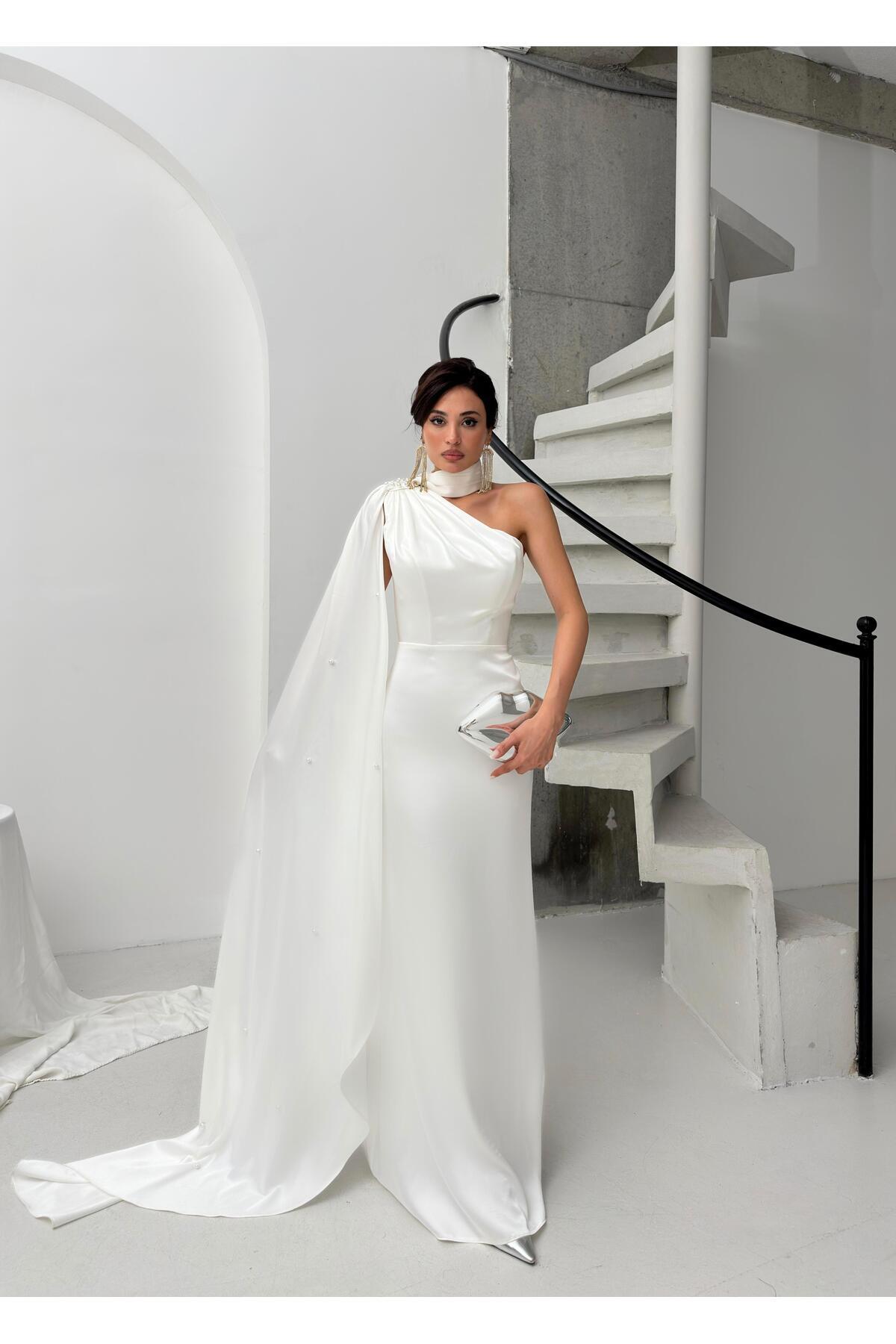 Beyaz Tek Omuz Şal Detaylı Asimetrik Saten Abiye Elbise Beyaz Tek Omuz Şal Detaylı Asimetrik Saten Abiye Elbise ST1099-1 44
