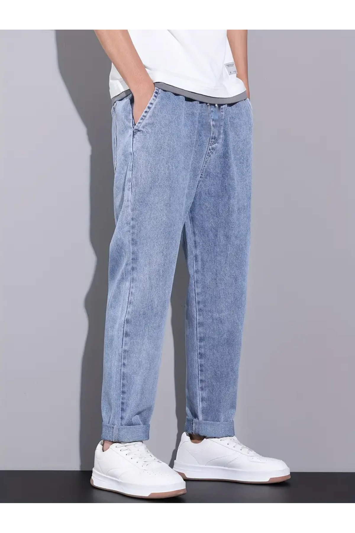 İp Bağlamalı Regular Buz Mavi Kot Pantolon İp Bağlamalı Regular Buz Mavi Kot Pantolon esti23400 2XL