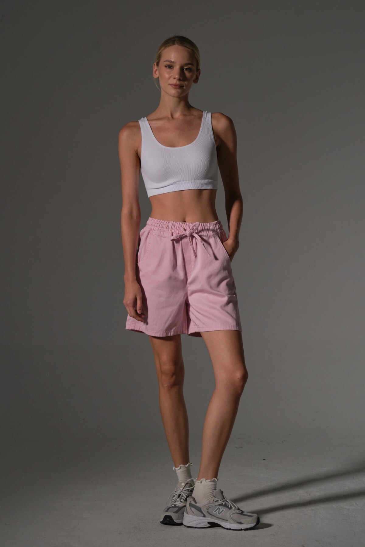 Doğal Dökümlü Pamuk Lyocell Kumaş Lastikli, Bağcıklı Cepli Kadın Mini Şort Doğal Dökümlü Pamuk Lyocell Kumaş Lastikli, Bağcıklı Cepli Kadın Mini Şort NS25WODMEL10882 44
