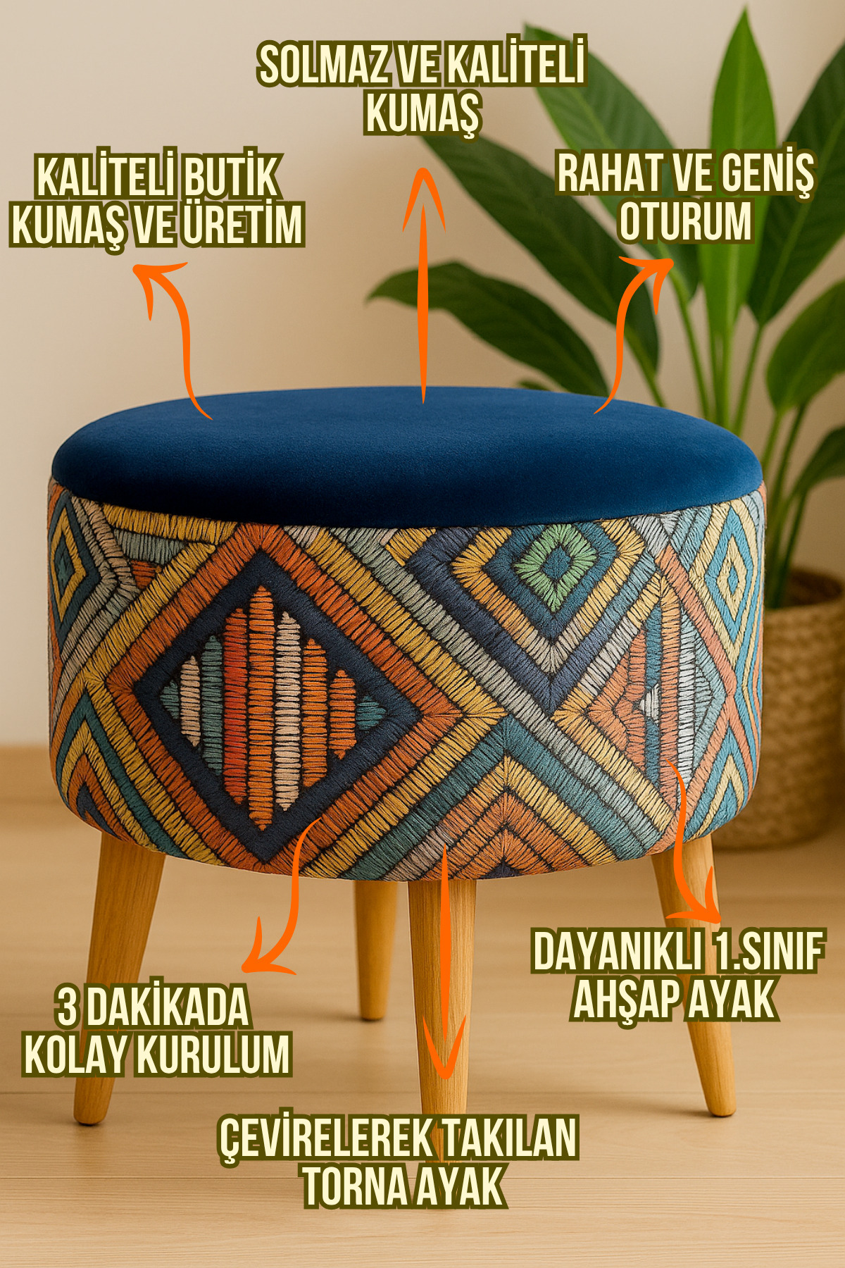 Albatros Retro Gürgen Ahşap Ayaklı Dekoratif Etnik Üst Lacivert Desenli Silindir Puf Bench Koltuk Albatros Retro Gürgen Ahşap Ayaklı Dekoratif Etnik Üst Lacivert Desenli Silindir Puf Bench Koltuk NEW-PUF-001 تک سایز
