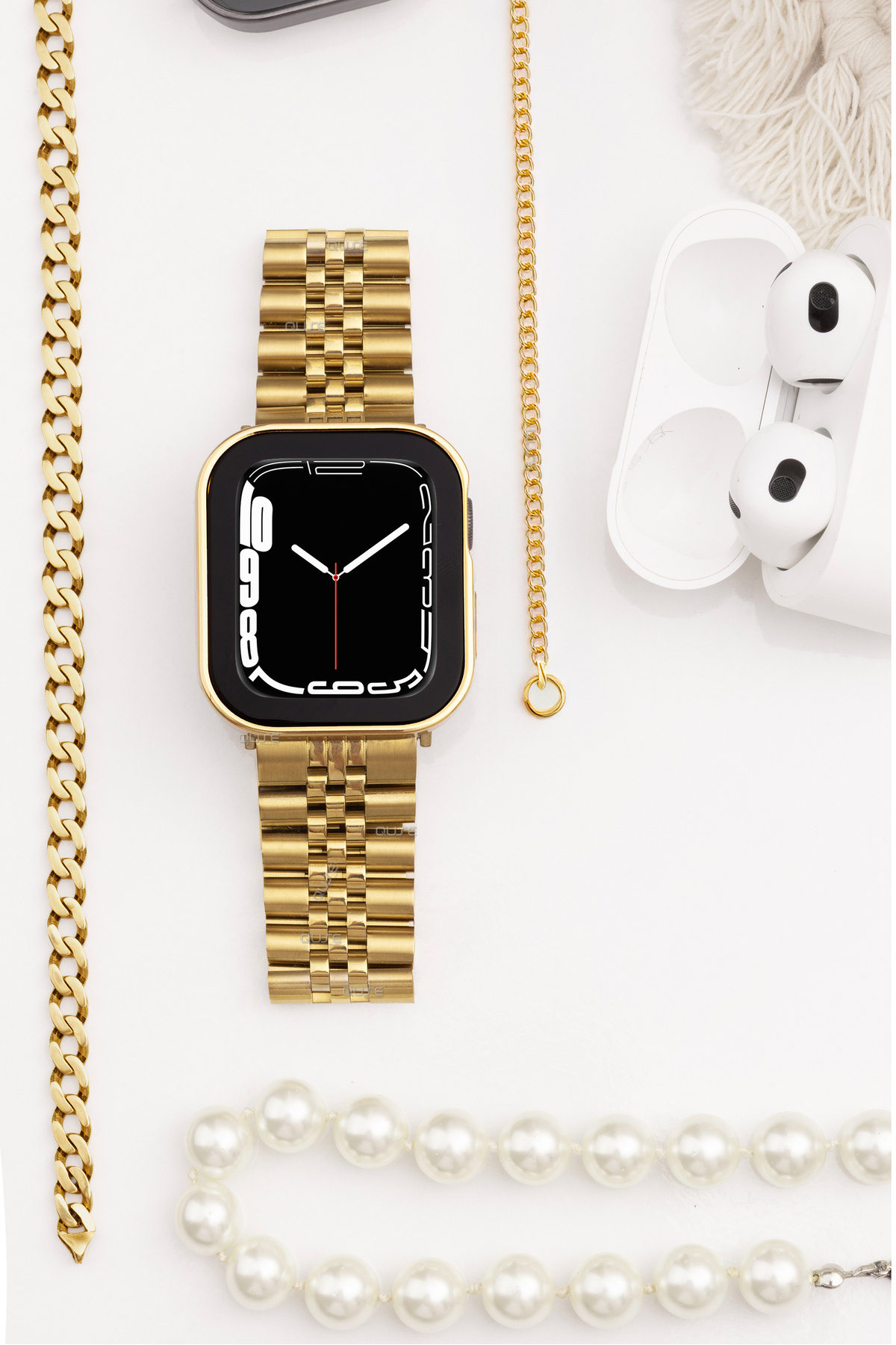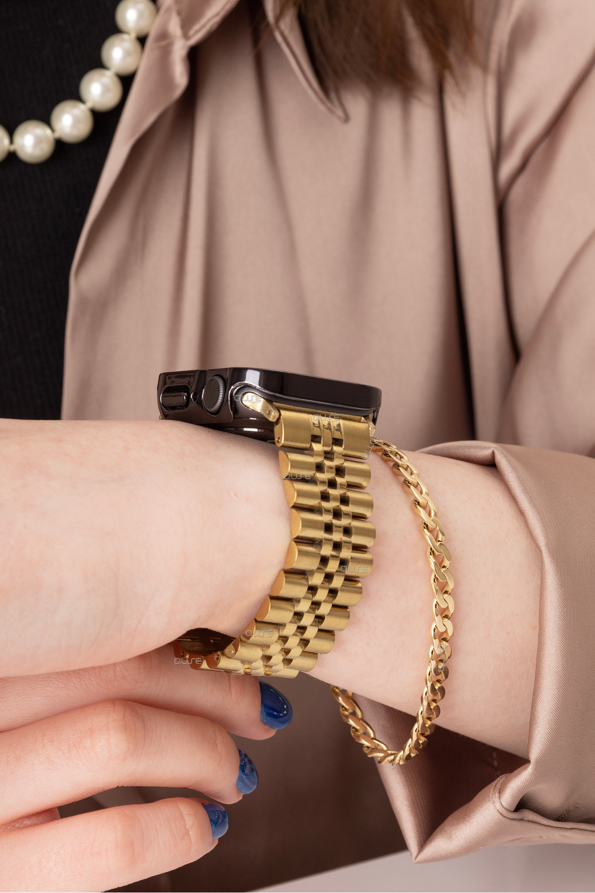 Jubilee Metal Kordon, Apple Watch SE/10/9/8/7/6/5/4/3 ile Uyumlu, 42mm/41mm/40mm/38mm, Gold Jubilee Metal Kordon, Apple Watch SE/10/9/8/7/6/5/4/3 ile Uyumlu, 42mm/41mm/40mm/38mm, Gold QUSEJBL41 تک سایز