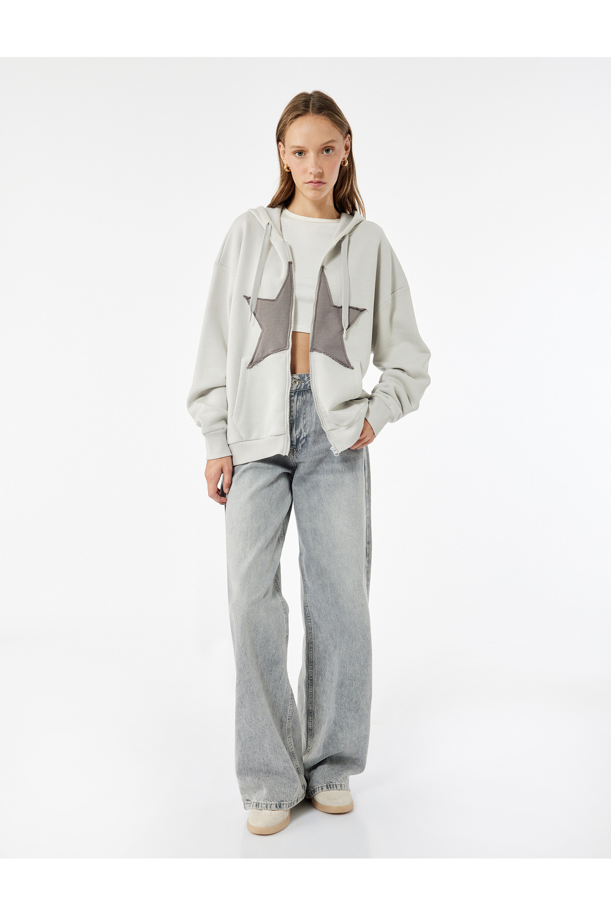 Yıldız Baskılı Şardonlu Kapüşonlu Kanguru Cepli Oversize Fermuarlı Sweatshirt Yıldız Baskılı Şardonlu Kapüşonlu Kanguru Cepli Oversize Fermuarlı Sweatshirt 6WAL10114IK Standart