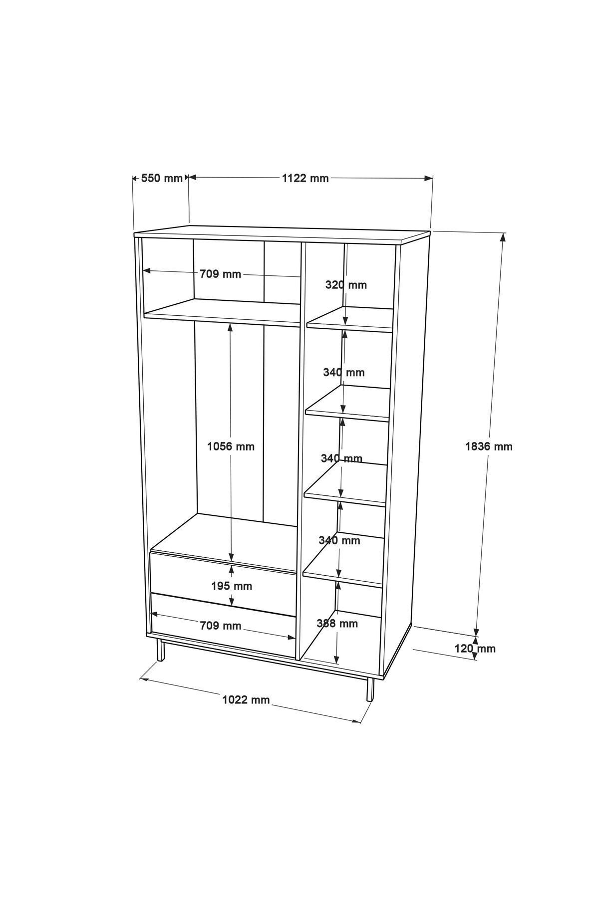 Bohem Gardırop 3 Kapı 2 Çekmece Metal Ayaklı 196cm Beyaz BOH15-W Bohem Gardırop 3 Kapı 2 Çekmece Metal Ayaklı 196cm Beyaz BOH15-W 196 cm