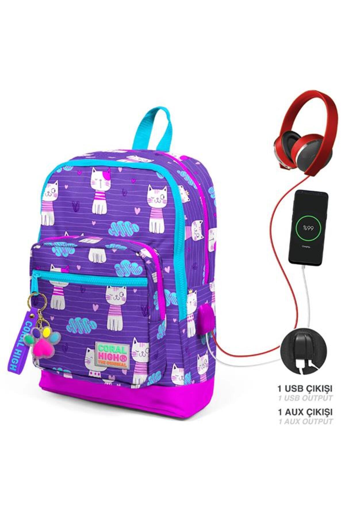 Kids Mor Pembe Kedi Desenli Dört Bölmeli Usbli Okul Sırt Çantası 23264 Kids Mor Pembe Kedi Desenli Dört Bölmeli Usbli Okul Sırt Çantası 23264 تک سایز