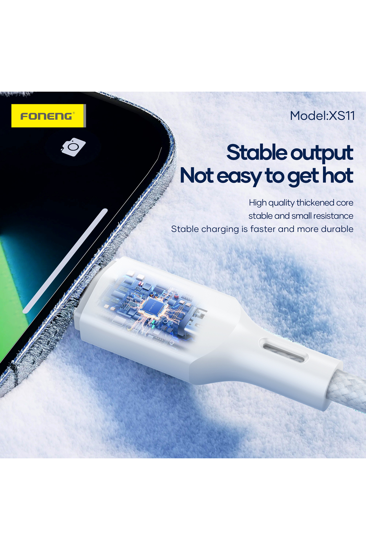 Samsung Huawei Xiaomi iPhone Uyumlu 60W Type-C to Type-C 1 Metre Foneng Örgü Hızlı Şarj Data Kablosu Samsung Huawei Xiaomi iPhone Uyumlu 60W Type-C to Type-C 1 Metre Foneng Örgü Hızlı Şarj Data Kablosu XS11 Type-C Kablo تک سایز