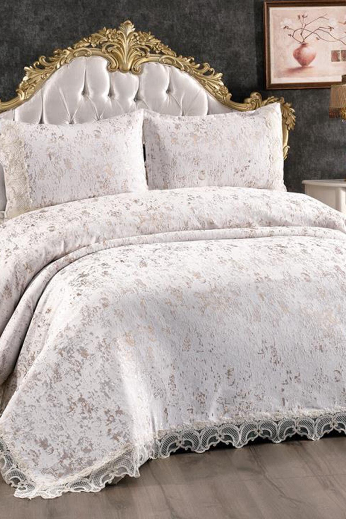 Gümüş Çift Kişilik Yatak Örtüsü Bej Gümüş Çift Kişilik Yatak Örtüsü Bej CD250736 تک سایز