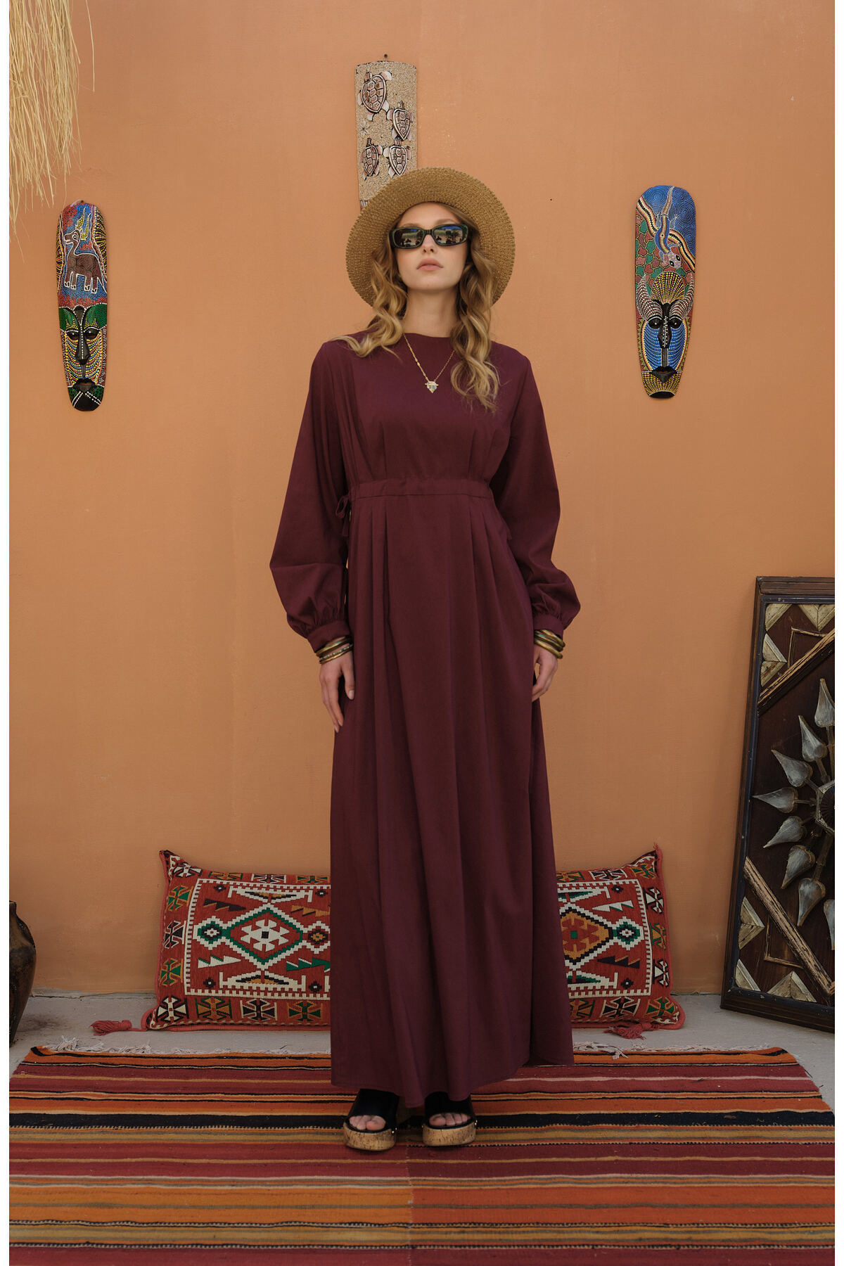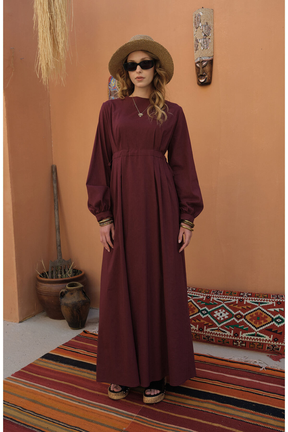Tünel Büzgülü Vişne Pamuk Elbise Tünel Büzgülü Vişne Pamuk Elbise FA2025YS-6106 XL
