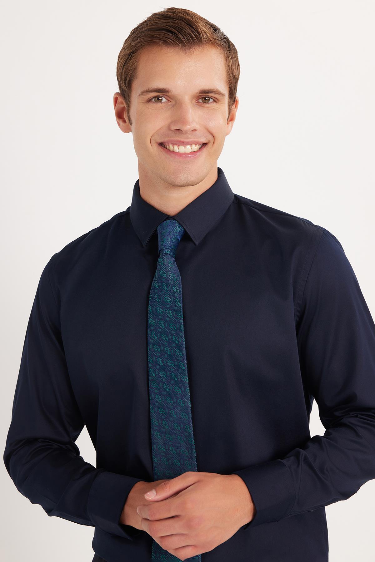 Erkek Slim Fit Premium Likralı Pamuk Saten Lacivert Gömlek Erkek Slim Fit Premium Likralı Pamuk Saten Lacivert Gömlek DR250008 2XL