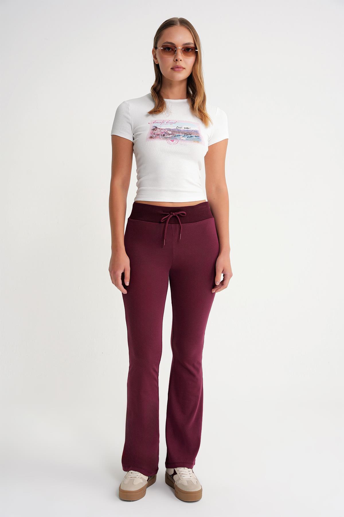 2017 Kadın Yüksek Bel İspanyol Paça Örme Bağcıklı Tayt Bordo 2017 Kadın Yüksek Bel İspanyol Paça Örme Bağcıklı Tayt Bordo Y25PNT2017 L