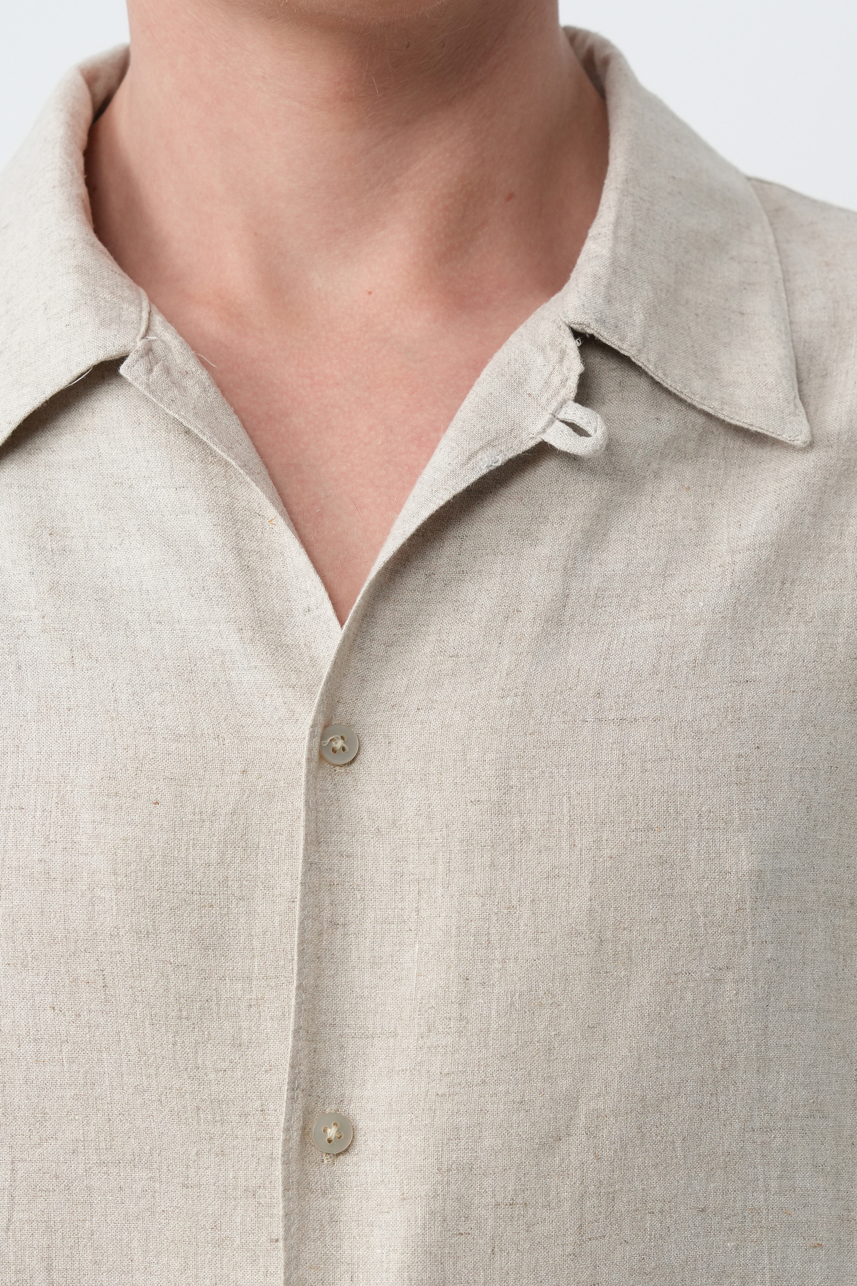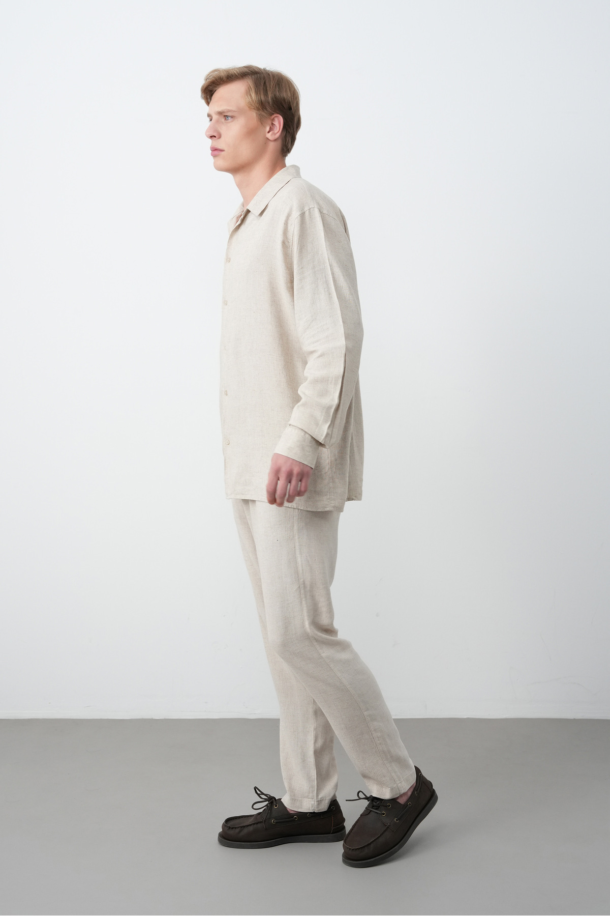 Relaxed Uzun Kol Keten Erkek Gömlek Relaxed Uzun Kol Keten Erkek Gömlek AGE-202507 XL