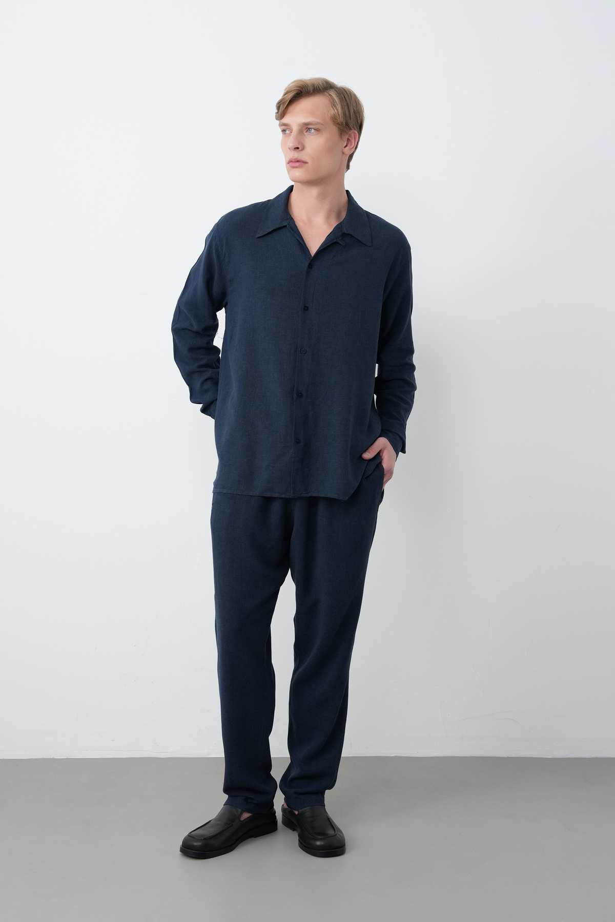 Relaxed Uzun Kol Keten Erkek Gömlek Relaxed Uzun Kol Keten Erkek Gömlek AGE-202507 XL
