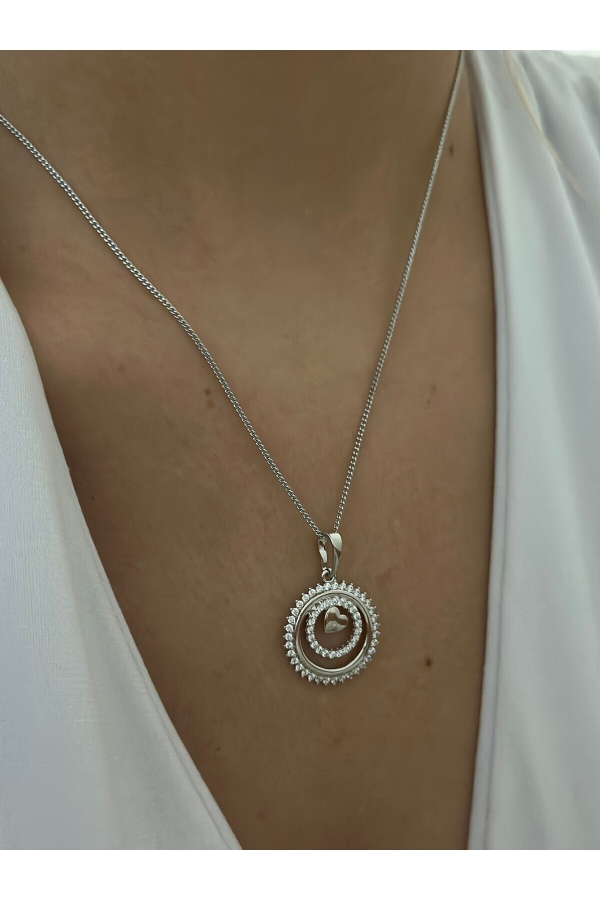 Zirkon Taş Kalp Detay Daire Çelik Kolye Zirkon Taş Kalp Detay Daire Çelik Kolye Myl0000014319 Orta Boy