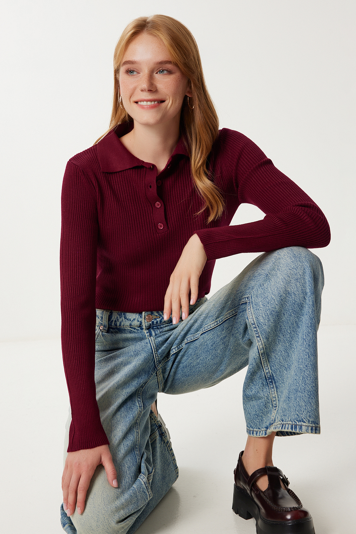 Kadın Kırmızı Polo Yaka Ayıcık İşlemeli Triko Kazak KH00102 Kadın Kırmızı Polo Yaka Ayıcık İşlemeli Triko Kazak KH00102 تک سایز