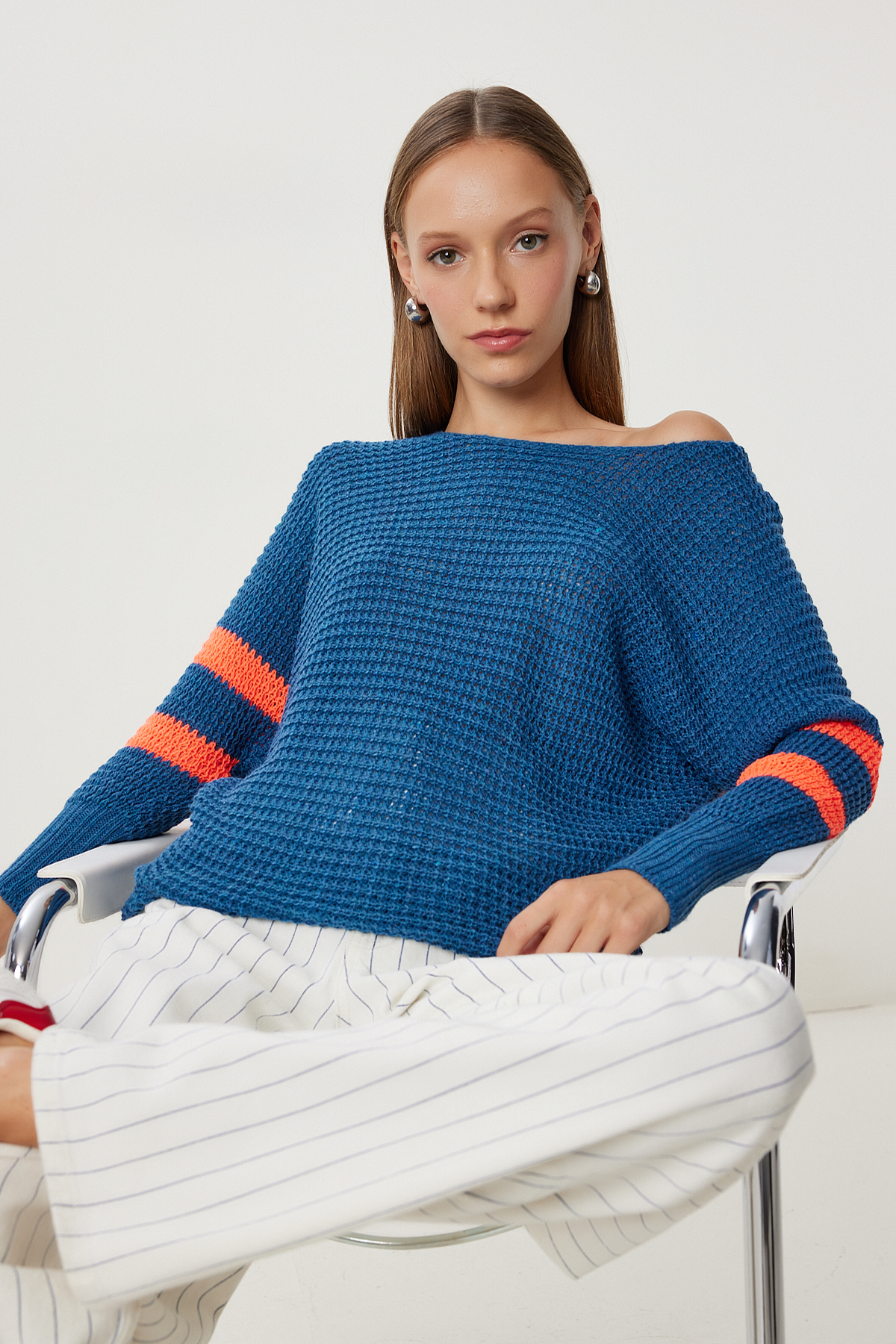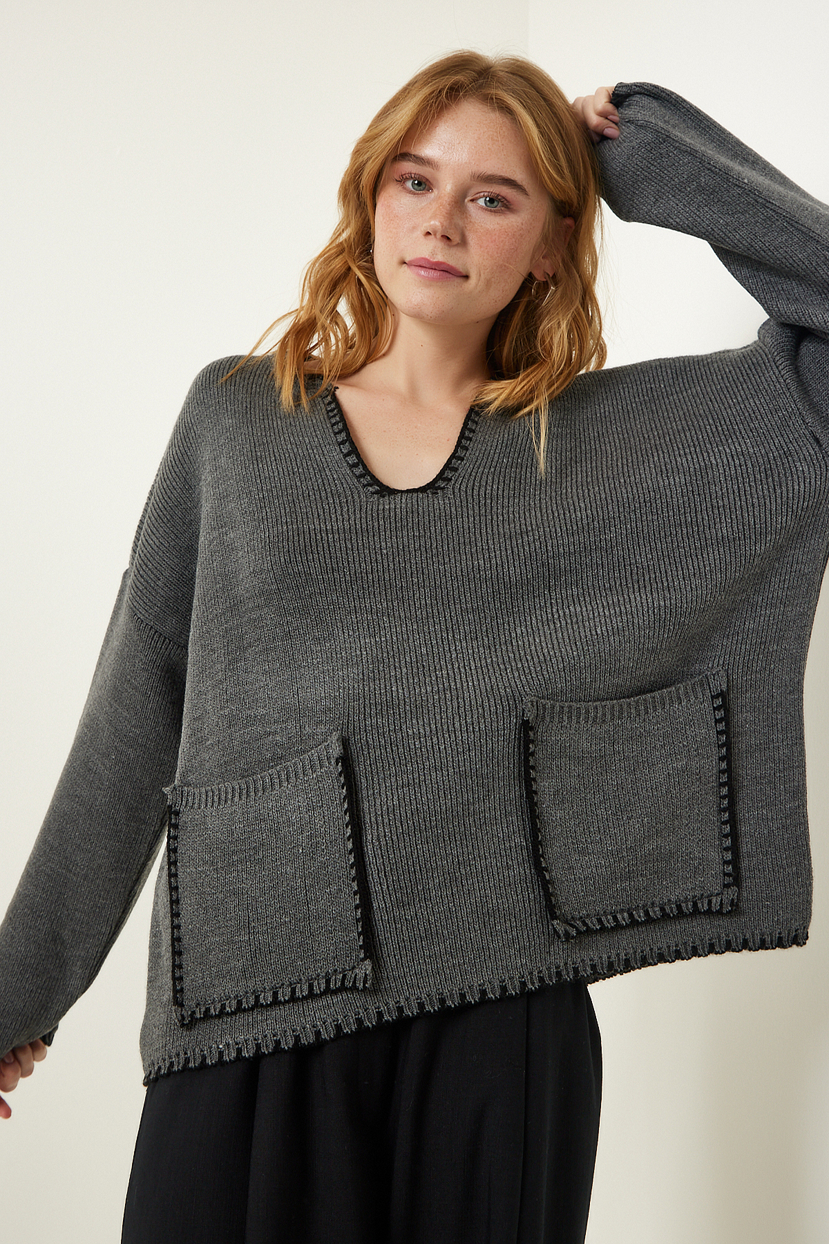 Kadın Koyu Yeşil Kontrast Renkli Uzun Triko Kazak YG00106 Kadın Koyu Yeşil Kontrast Renkli Uzun Triko Kazak YG00106 تک سایز