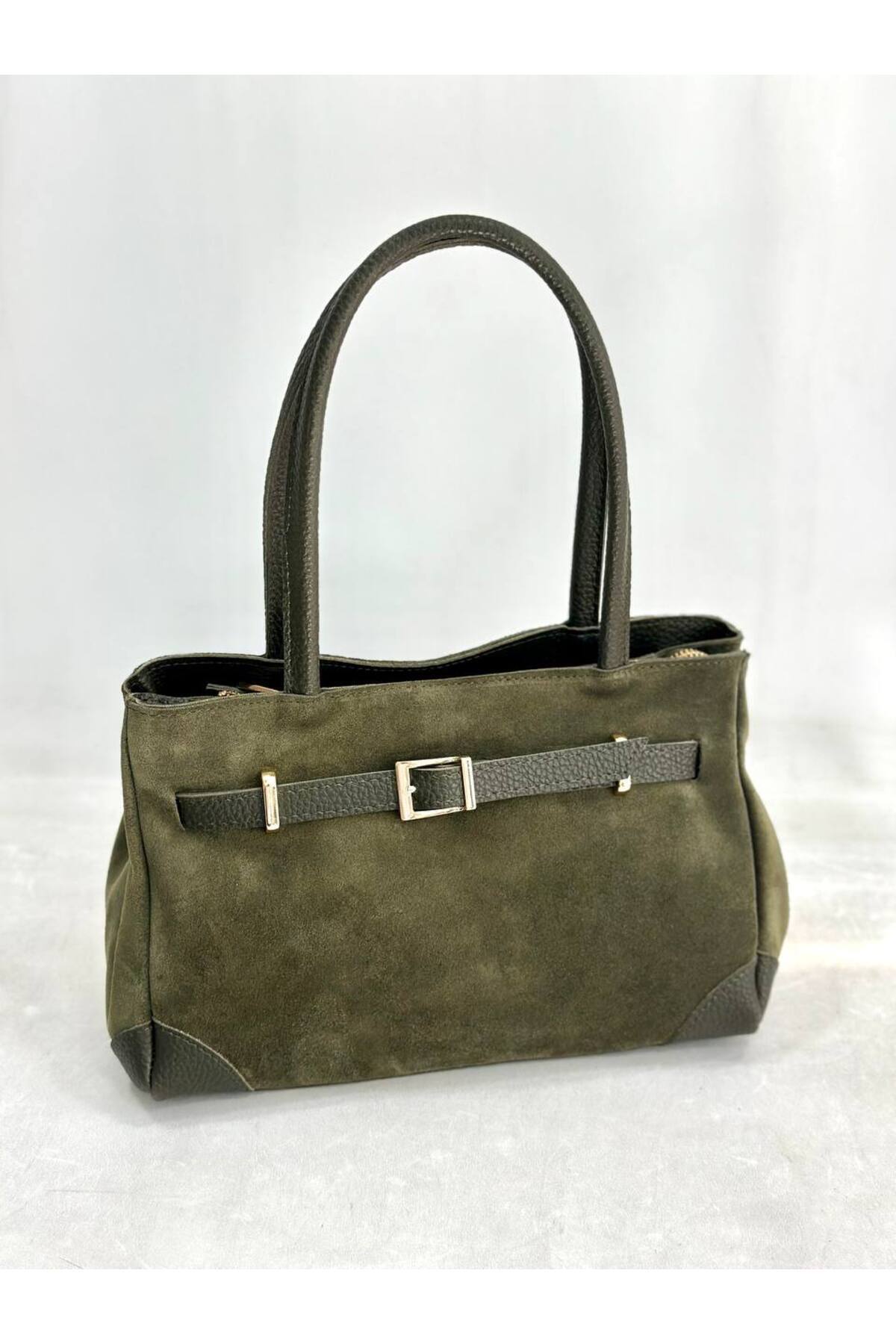 Kadın Çanta Hakiki Süet Deri Kemer Detaylı Kadın Çanta Hakiki Süet Deri Kemer Detaylı MESRYYMK تک سایز