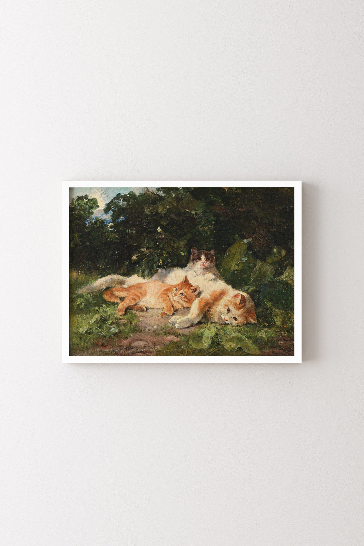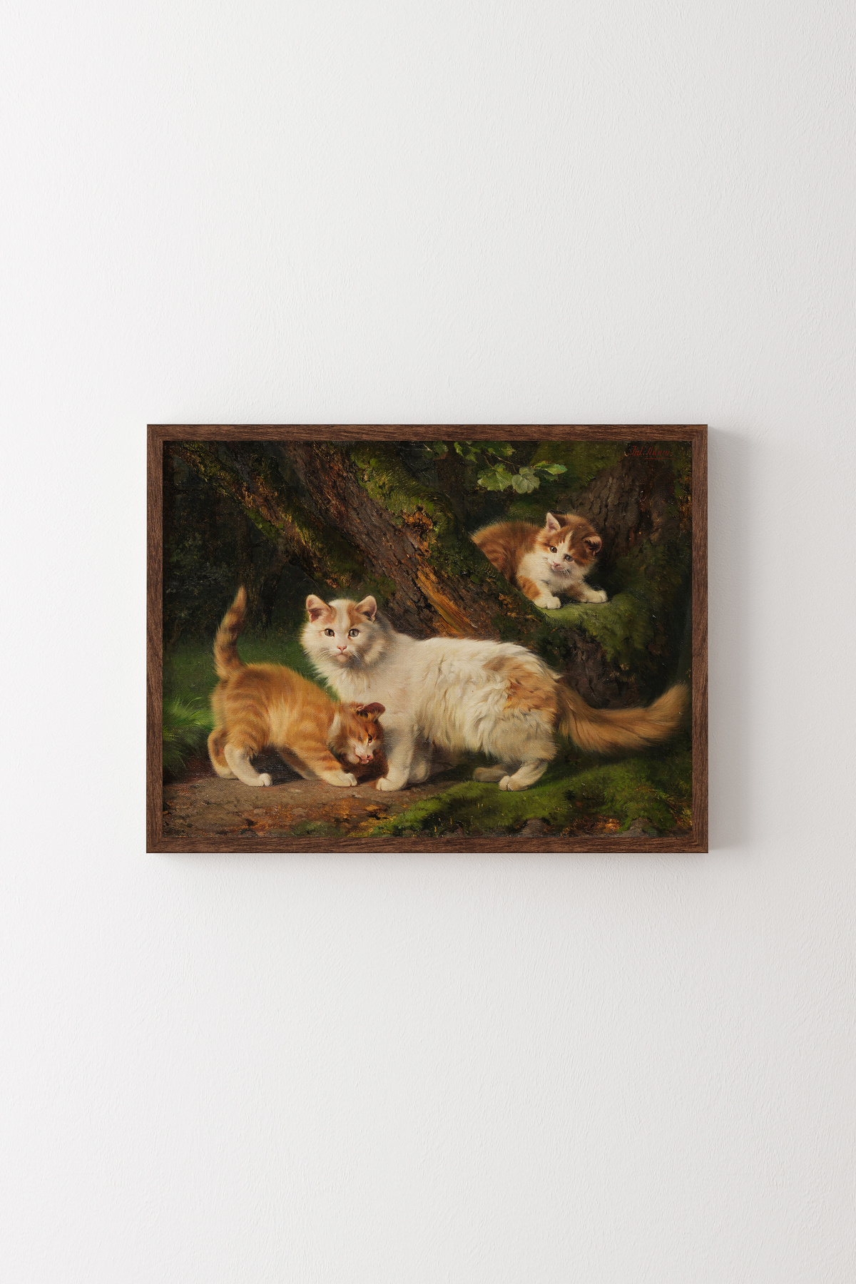 Yavrularıyla Birlikte Kedi - Ahşap Desenli Çerçeve Yavrularıyla Birlikte Kedi - Ahşap Desenli Çerçeve epq00465 50 x 70
