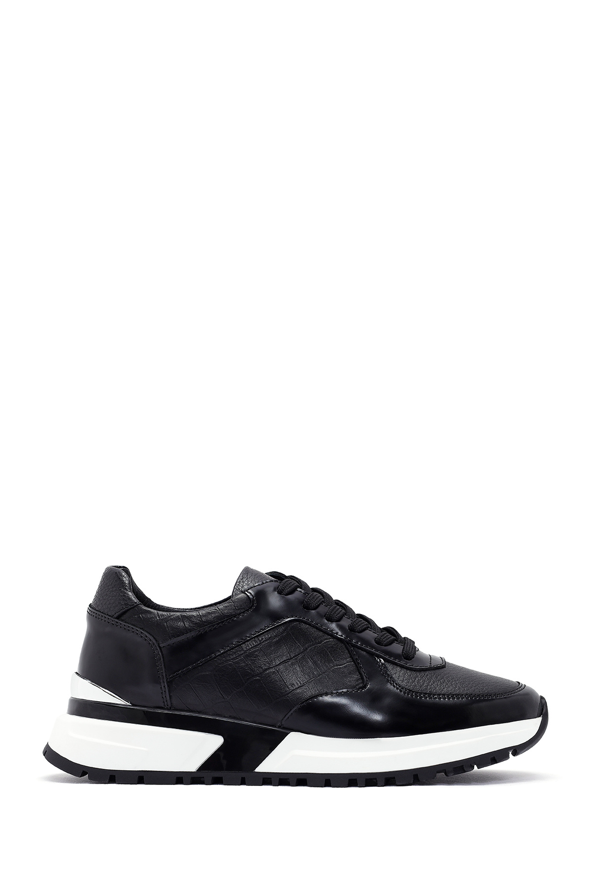 Erkek Siyah Bağcıklı Kalın Tabanlı Deri Sneaker,Kışlık Spor Ayakkabı 25WFD642318 Erkek Siyah Bağcıklı Kalın Tabanlı Deri Sneaker,Kışlık Spor Ayakkabı 25WFD642318 44