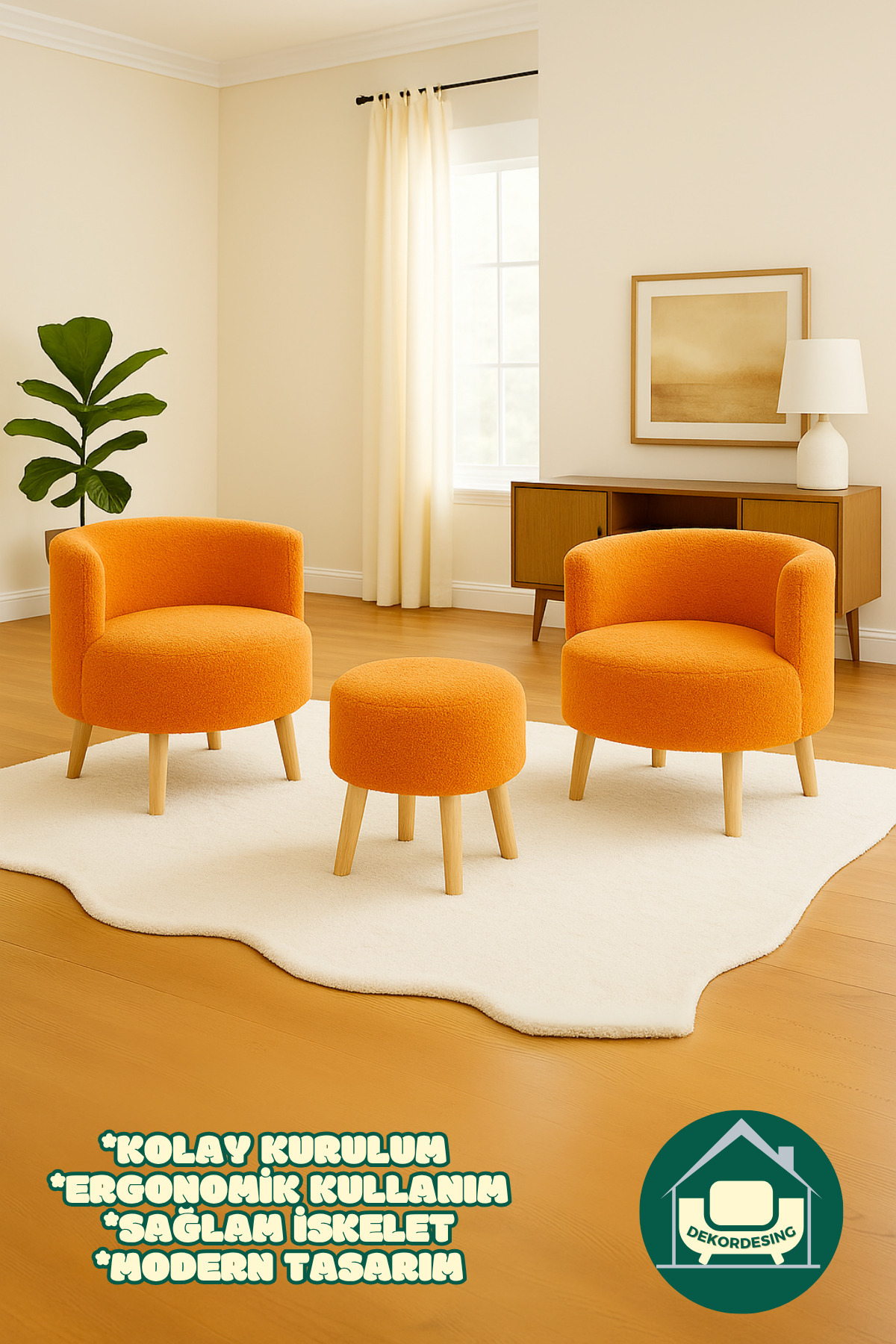 Elegant Comfort Turuncu Çay Seti Ve Peluş Ikili Berjer & Puf Takımı - 3'lü Set Elegant Comfort Turuncu Çay Seti Ve Peluş Ikili Berjer & Puf Takımı - 3'lü Set 678944335567 تک سایز